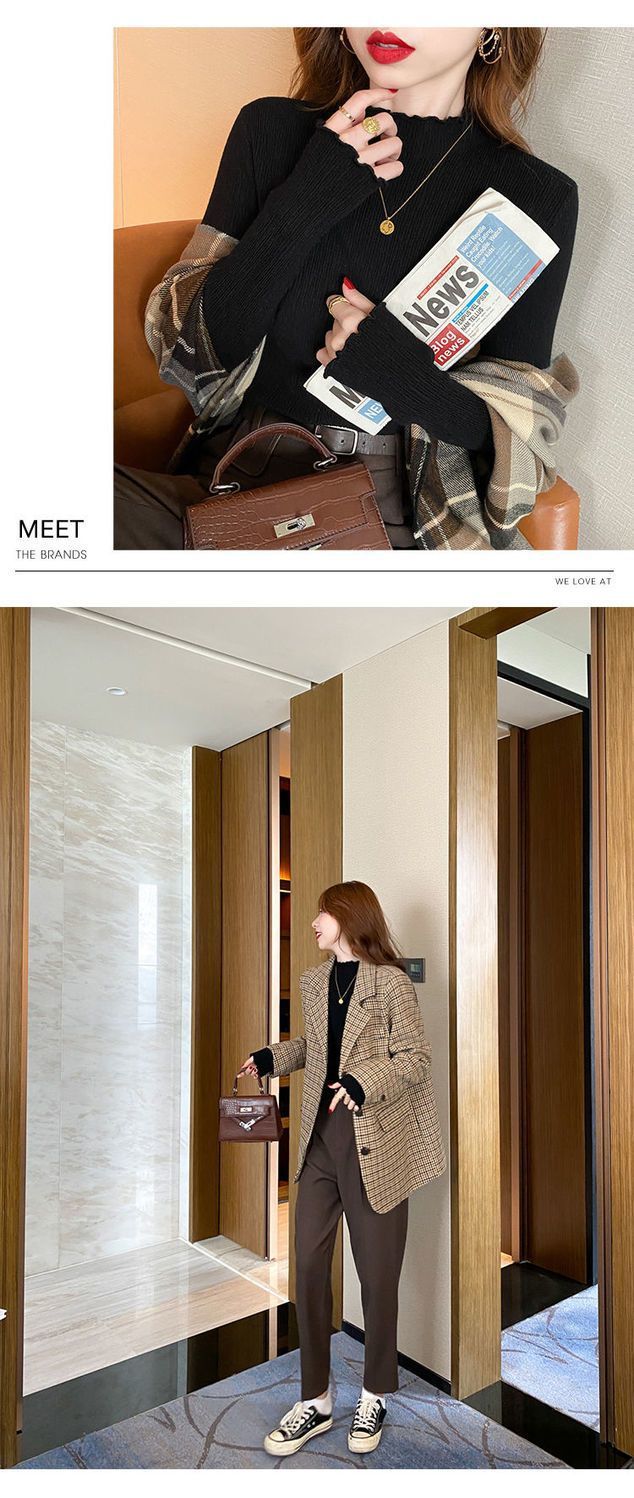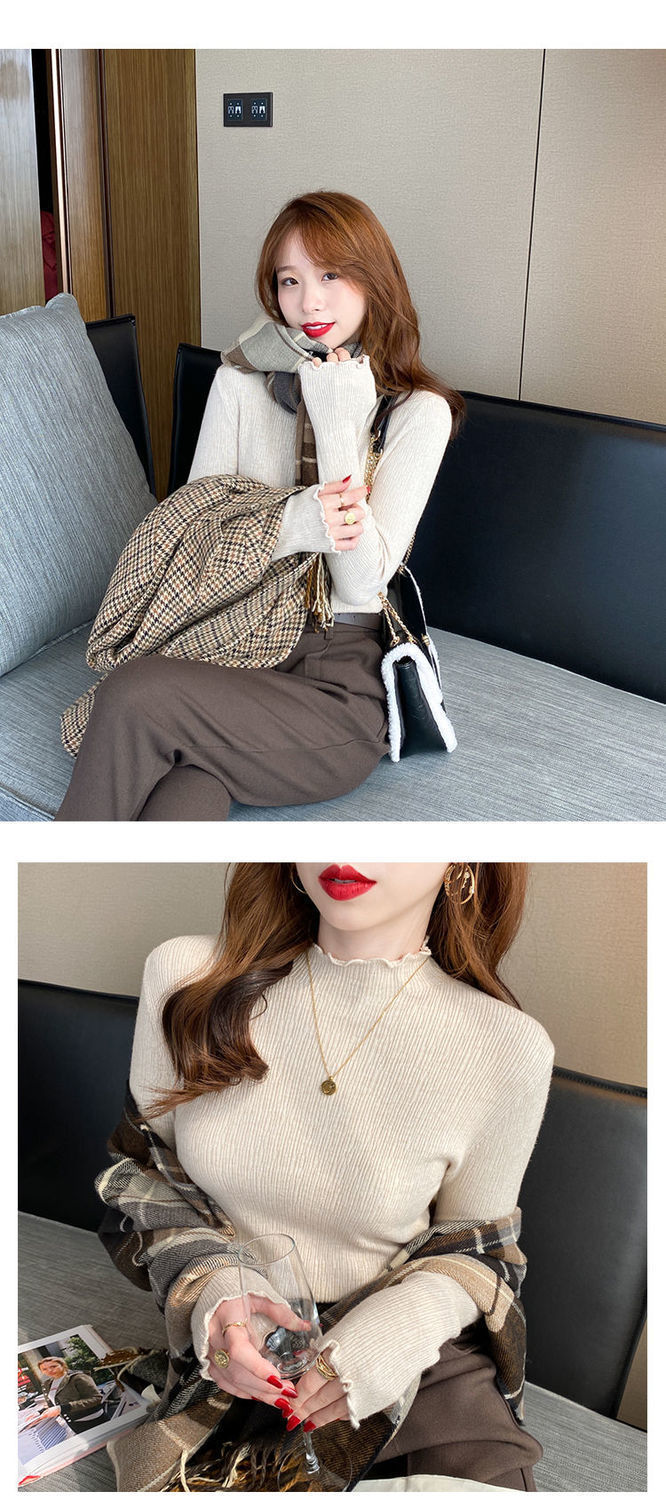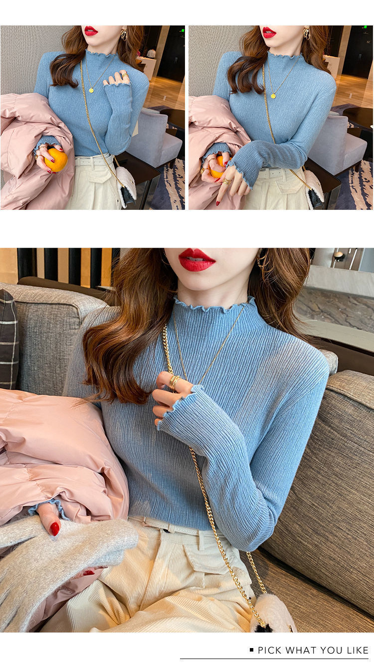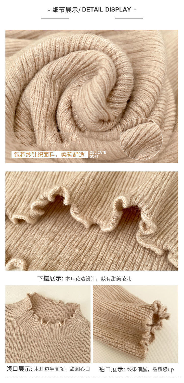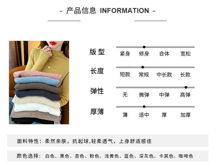絶美の木の耳元の筋の理感の底のシャツのピットのセーターの女性の秋冬の半高襟の修身するメリヤスの上着