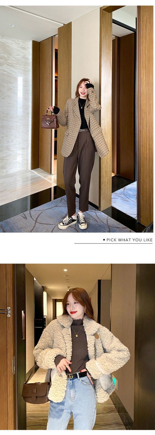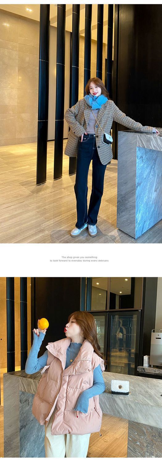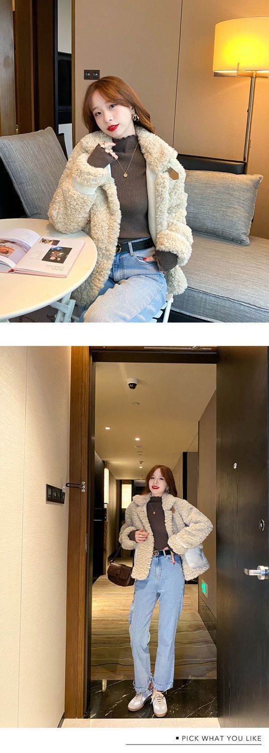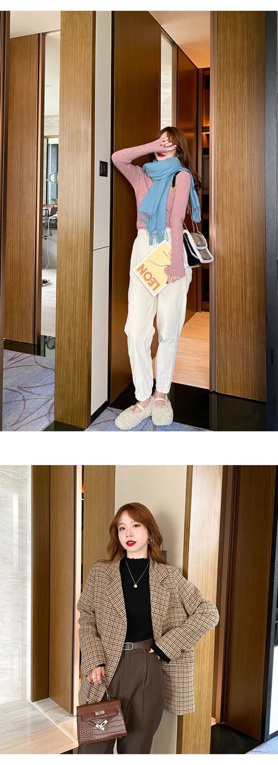 フランス式のスタンドカラーの雰囲気感が厚いセーターの女性は冬にとてもきれいで、腰のニットの服を収めてスリムに見える上着を身に着けます。