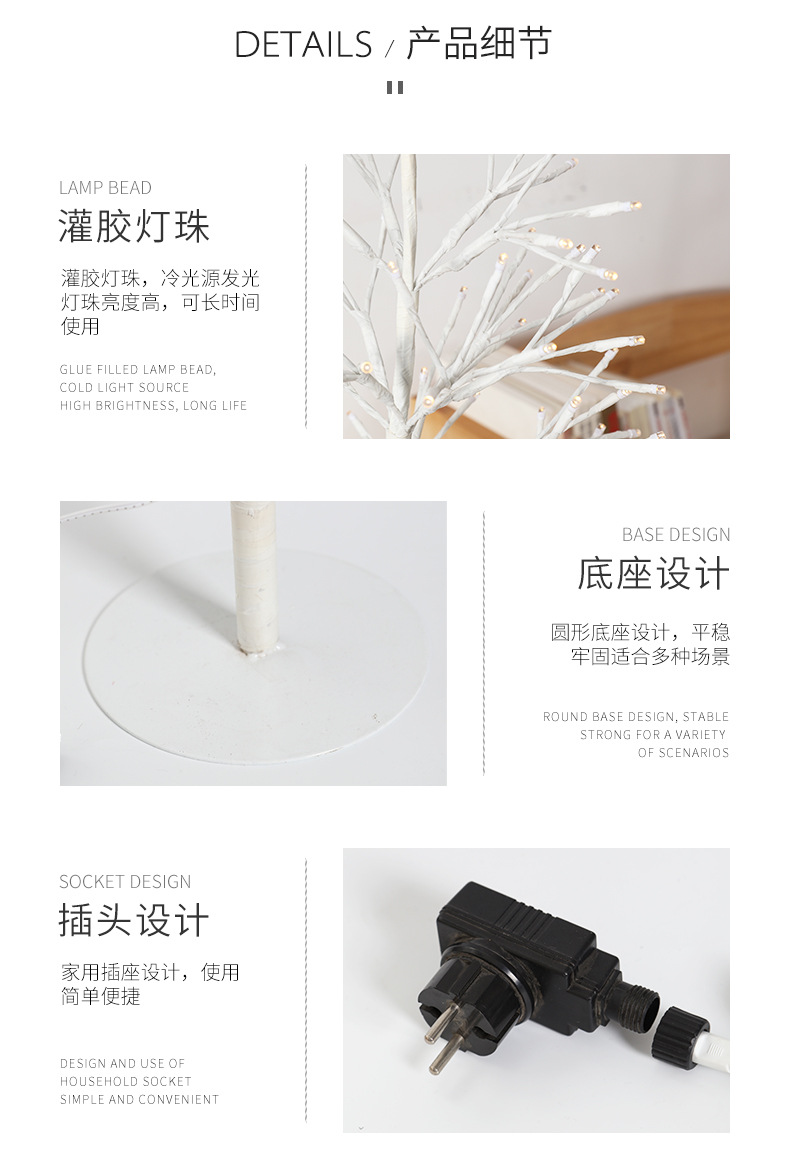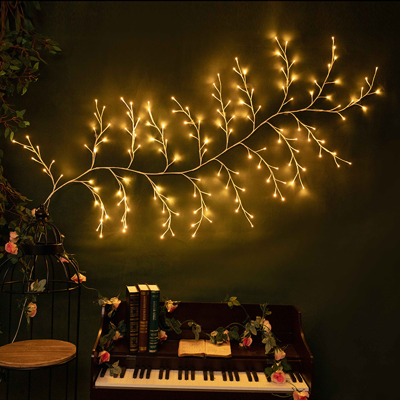 跨境新款LED藤条灯圣诞节室内墙面装饰氛围可弯曲造型仿真树枝灯