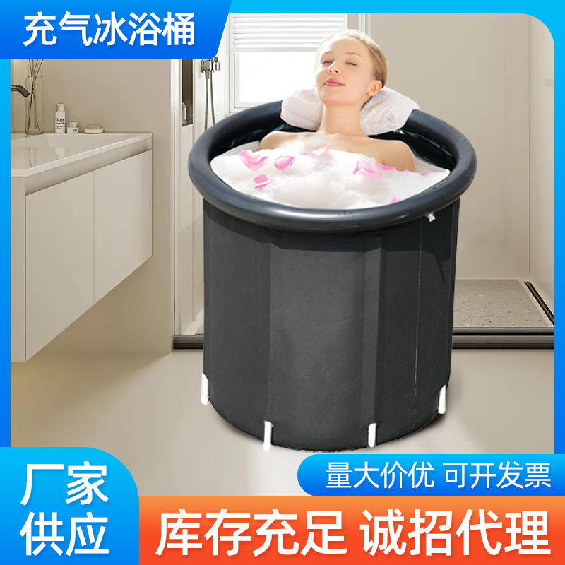 跨境沐浴便携式折叠冰桶成人款PVC充气泡澡桶户外支架水池