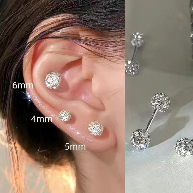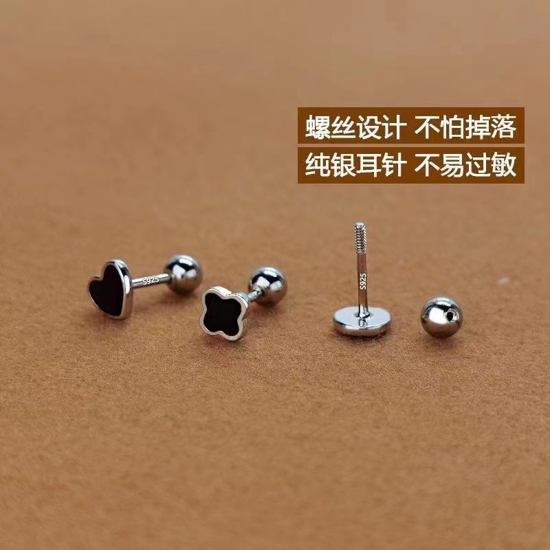 朱砂ピアスS925銀針高級感ねじボタンピアス女性耳穴耳骨釘アレルギー防止耳飾り紛失防止