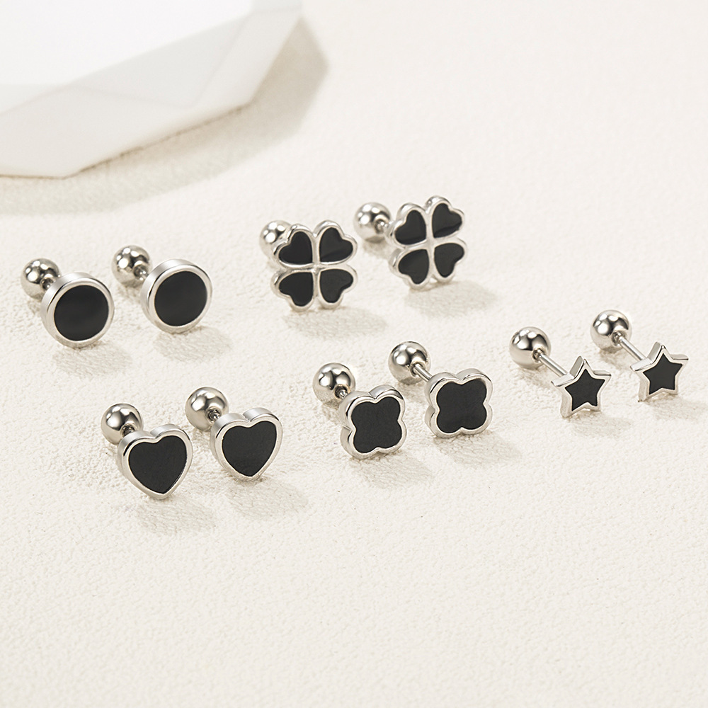 独特な小型の黒いクローバーの耳の骨の釘の女性は寝ています。