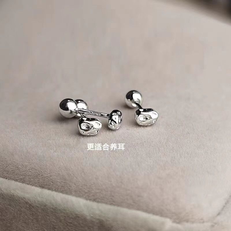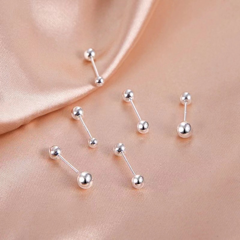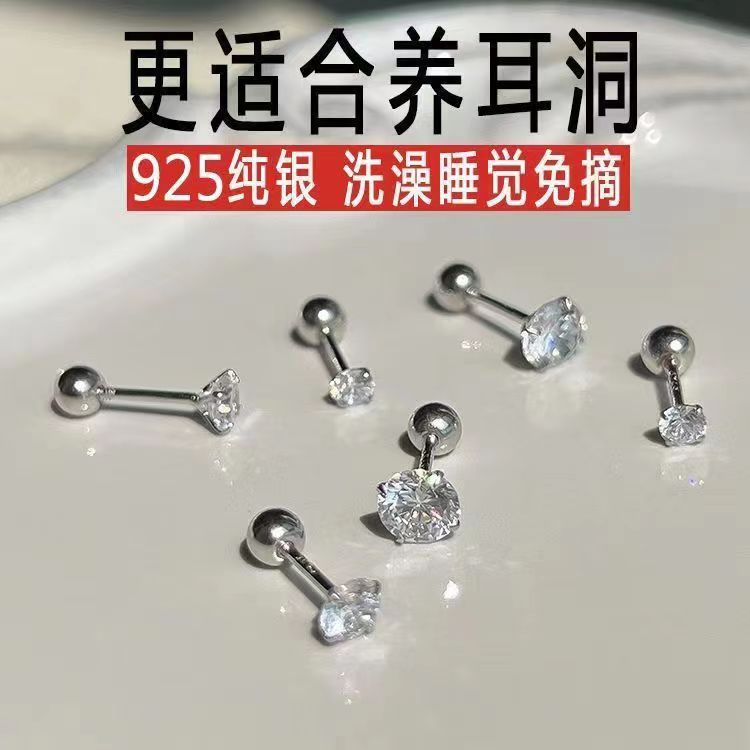 耳穴s925純銀小耳釘女性アレルギー防止耳骨釘シンプルなコンビネーションスパイラル銀豆ダブルヘッドが落ちないようにする