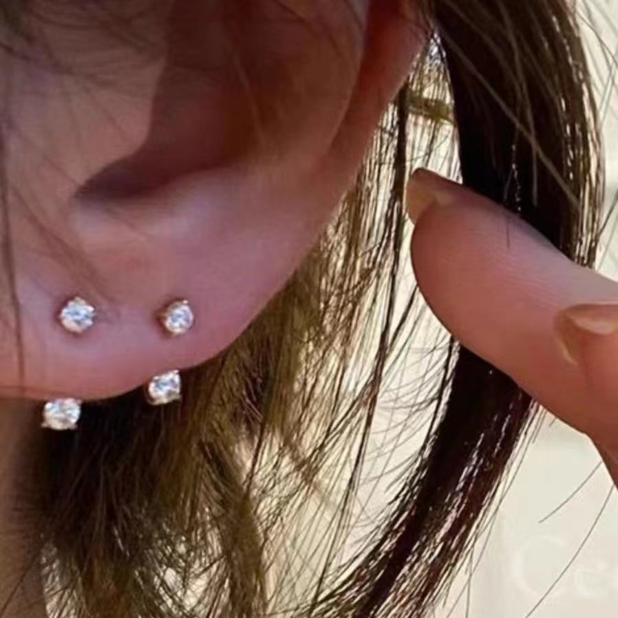 シンプルな後掛け式の小さいドリルのピアスs925銀の針はダイヤモンドのイヤリングの気質の1式の2つを入れてアメリカ式の超仙のピアスの潮をかぶせます。