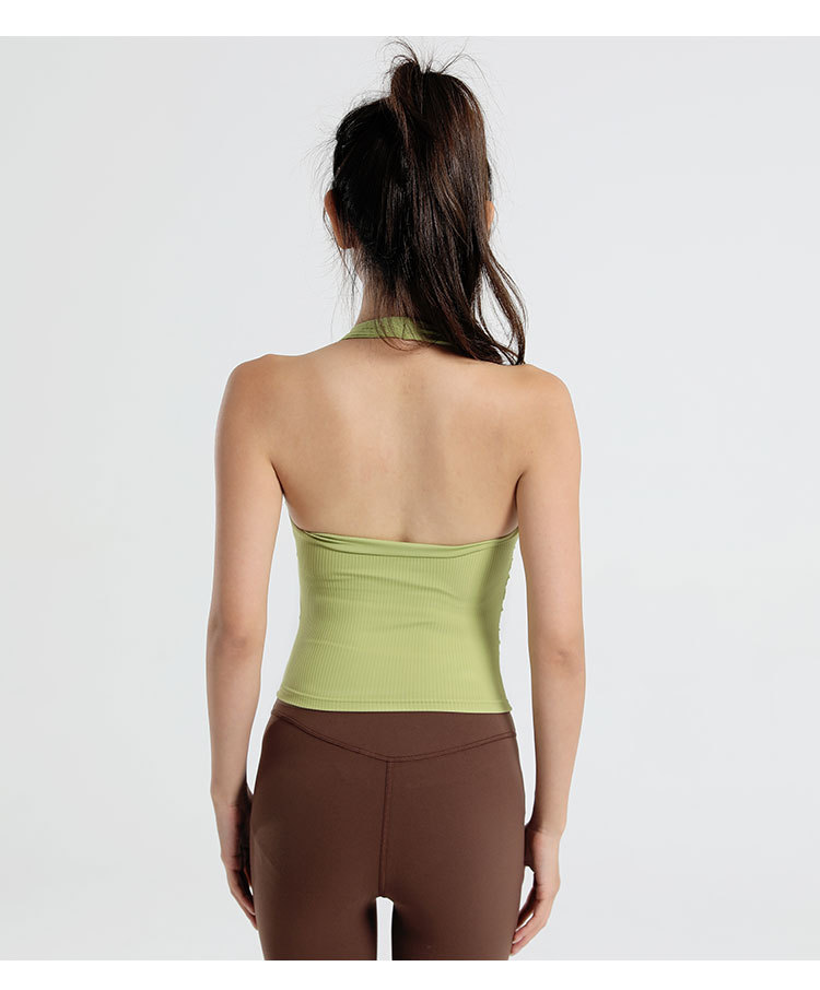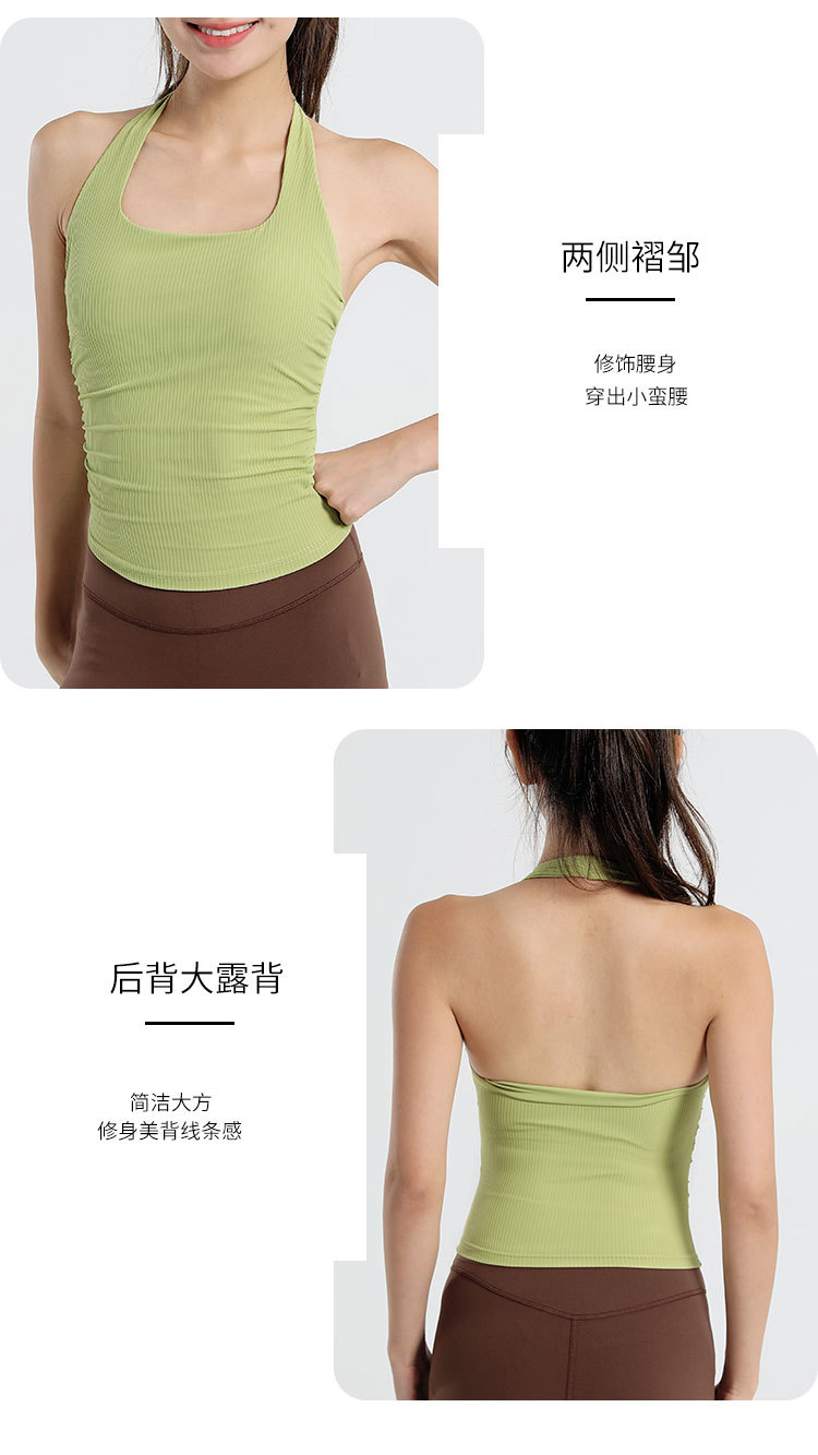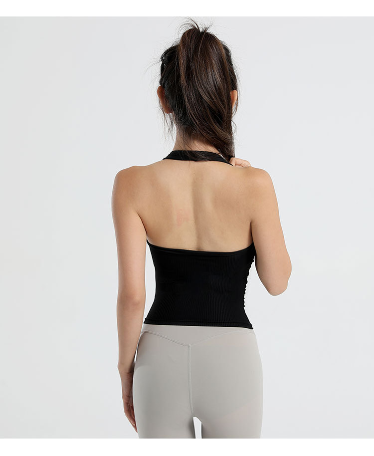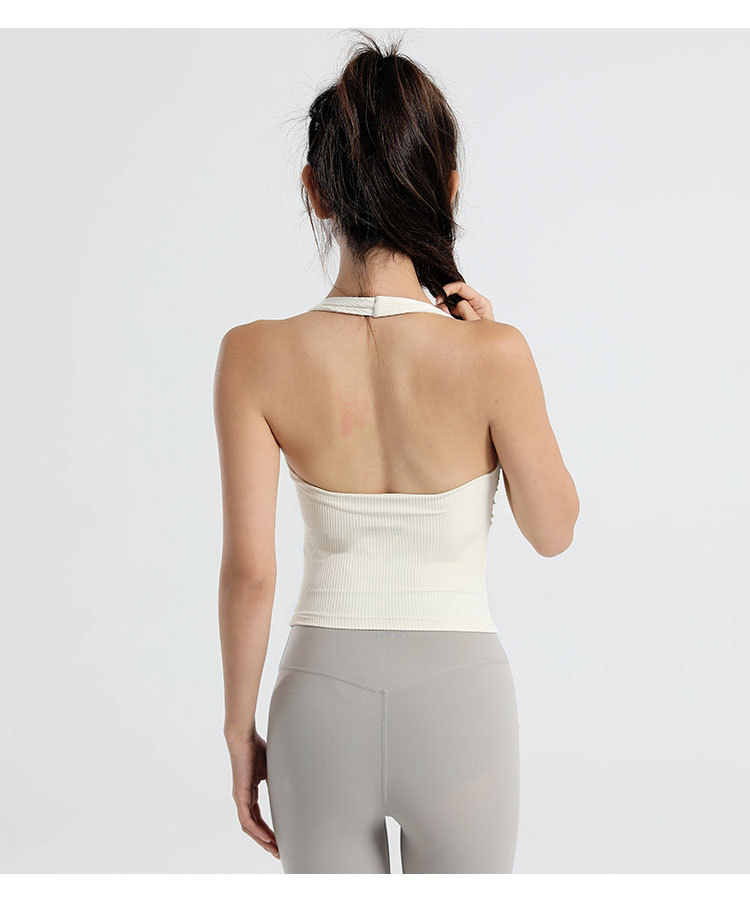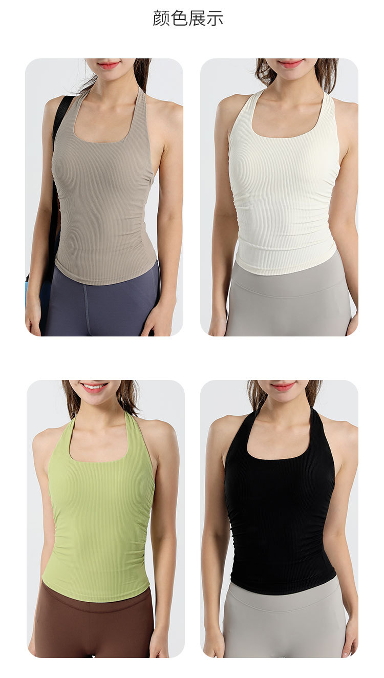 新しいスポーツブラ女性用耐衝撃ランニングリブフィットネスホルターネック美背中ブラヨガベストトップ通気性