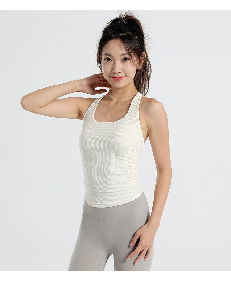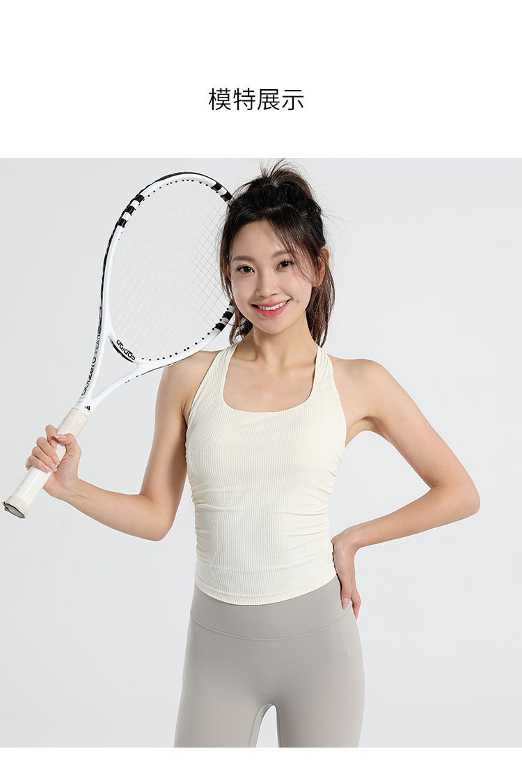 无缝瑜伽背心上衣女运动跑步速干健身服带胸垫罗纹背心运动上衣