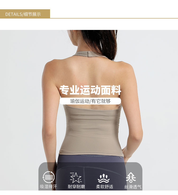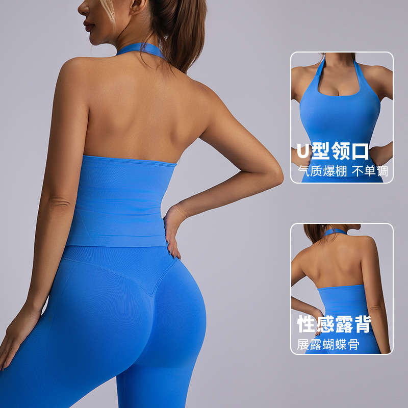 亚马逊宽带挂脖运动背心速干带胸垫瑜伽背心无缝运动健身背心女