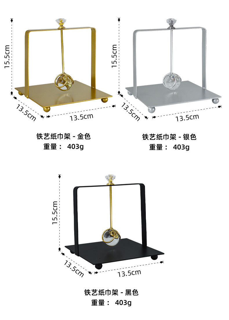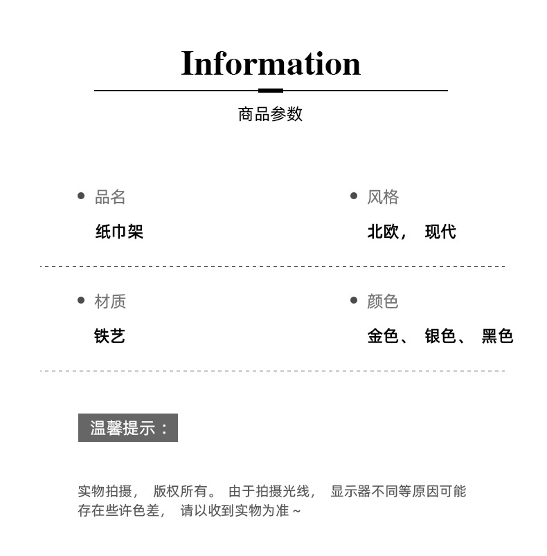 カラー 鉄製ティッシュホルダー-ブラック,鉄製ティッシュホルダー-ゴールド,鉄製ティッシュホルダー-銀色