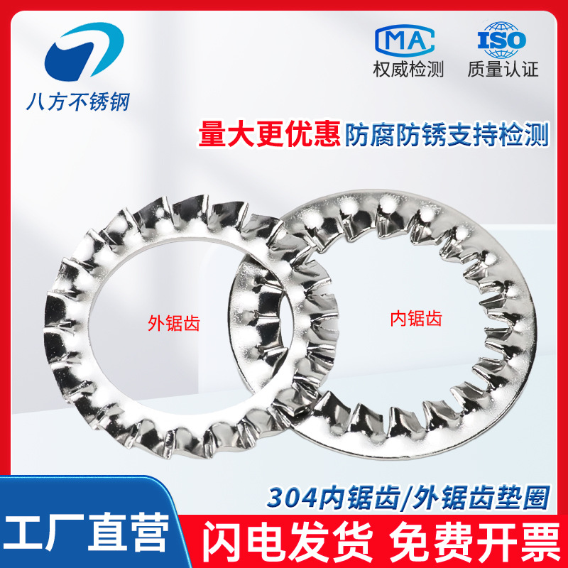 304不锈钢内外齿锯齿防滑垫圈菊花介子防松锁紧多齿垫清洗本色