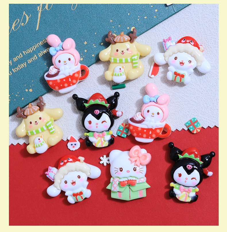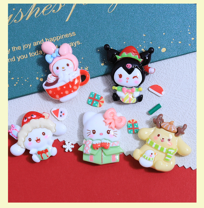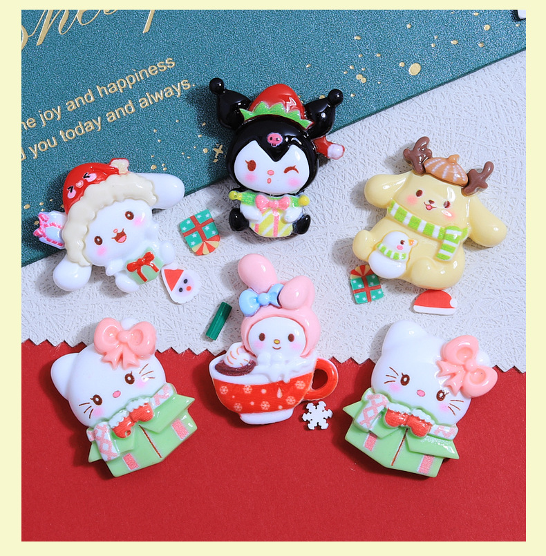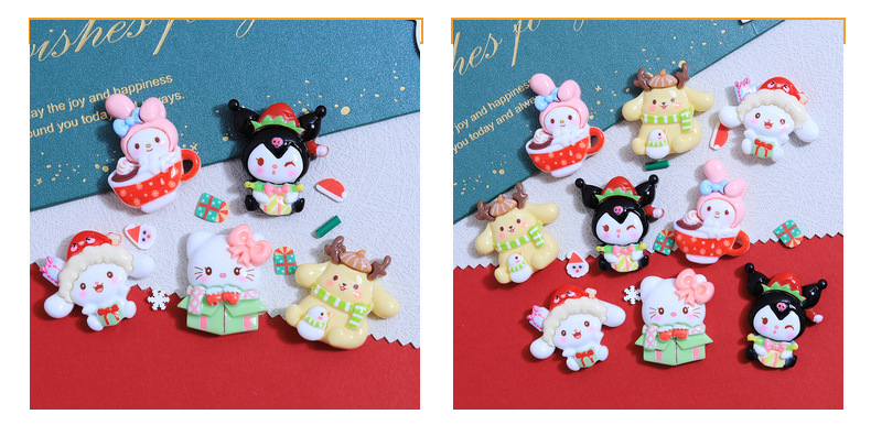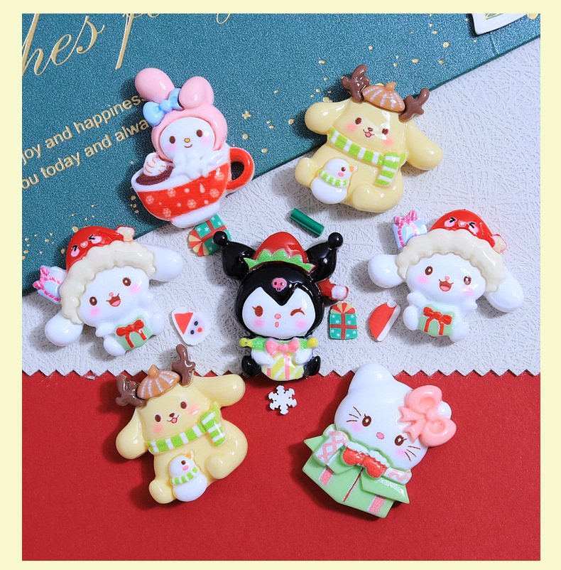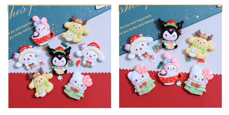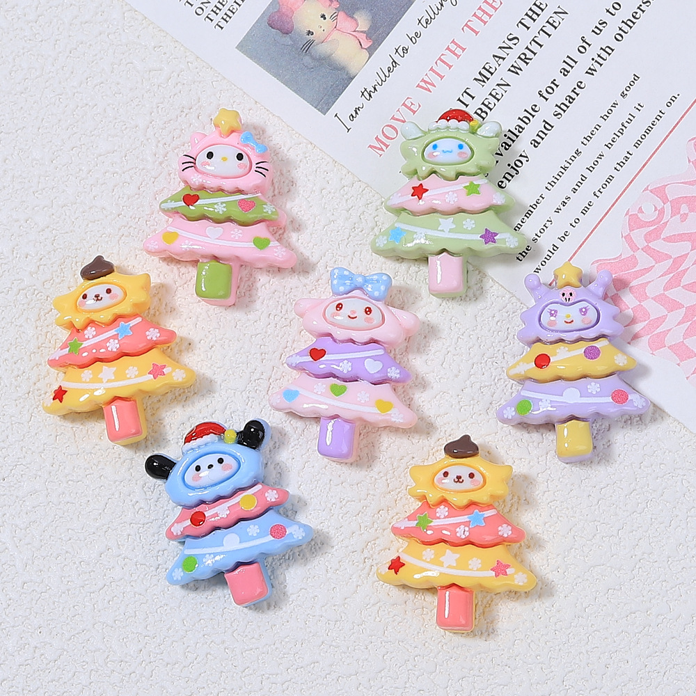 ニャンニャンクリスマス漫画クリスマスツリー手作りdiyヘアピンアクセサリークリームゴムアクセサリー樹脂アクセサリー材料バッグ
