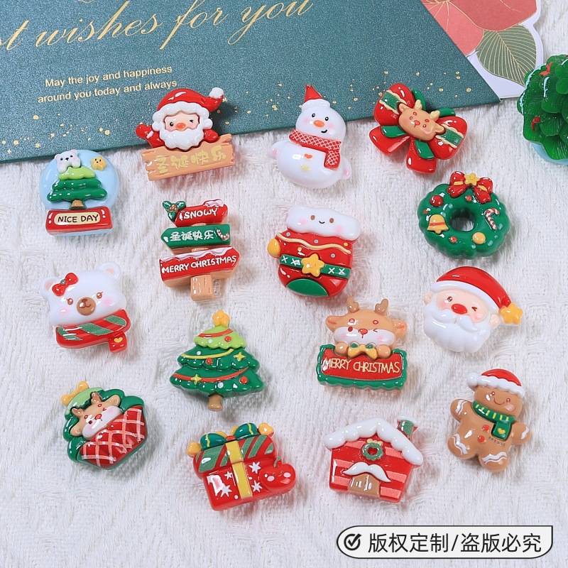卡通可爱圣诞节创意手工diy饰品配件奶油胶树脂小配件发夹材料包
