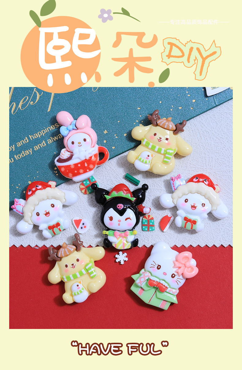 可爱圣诞节动物卡通手工diy饰品配件奶油胶树脂小配件发夹材料包