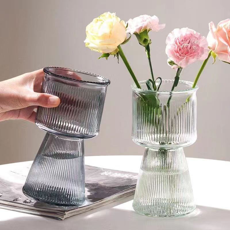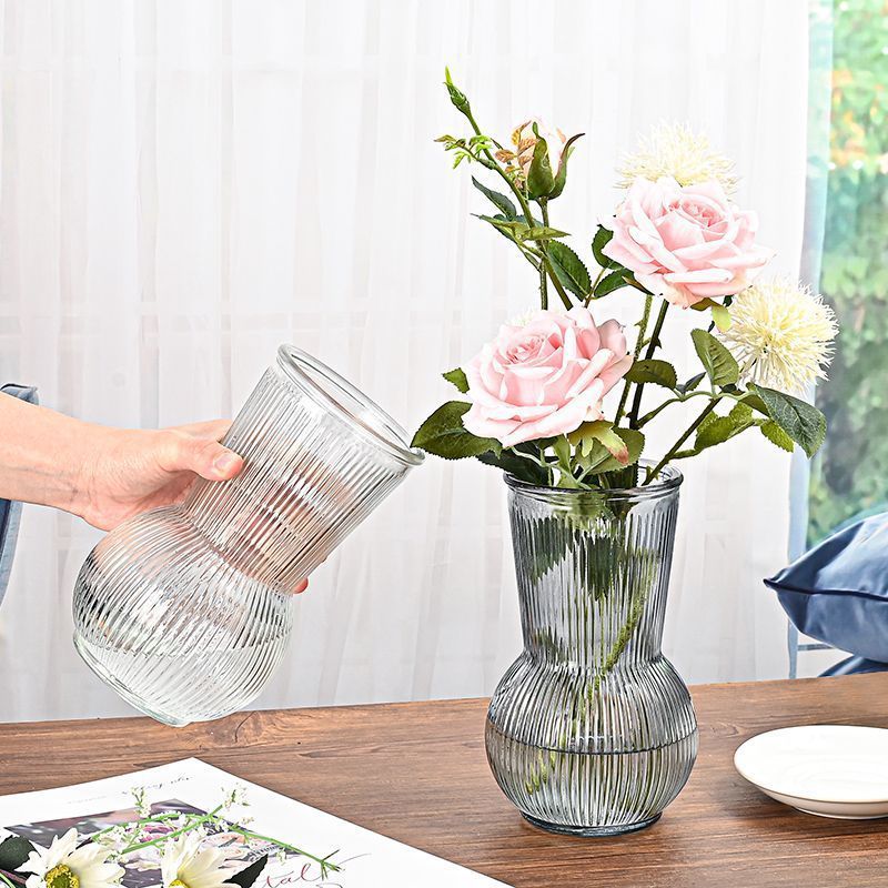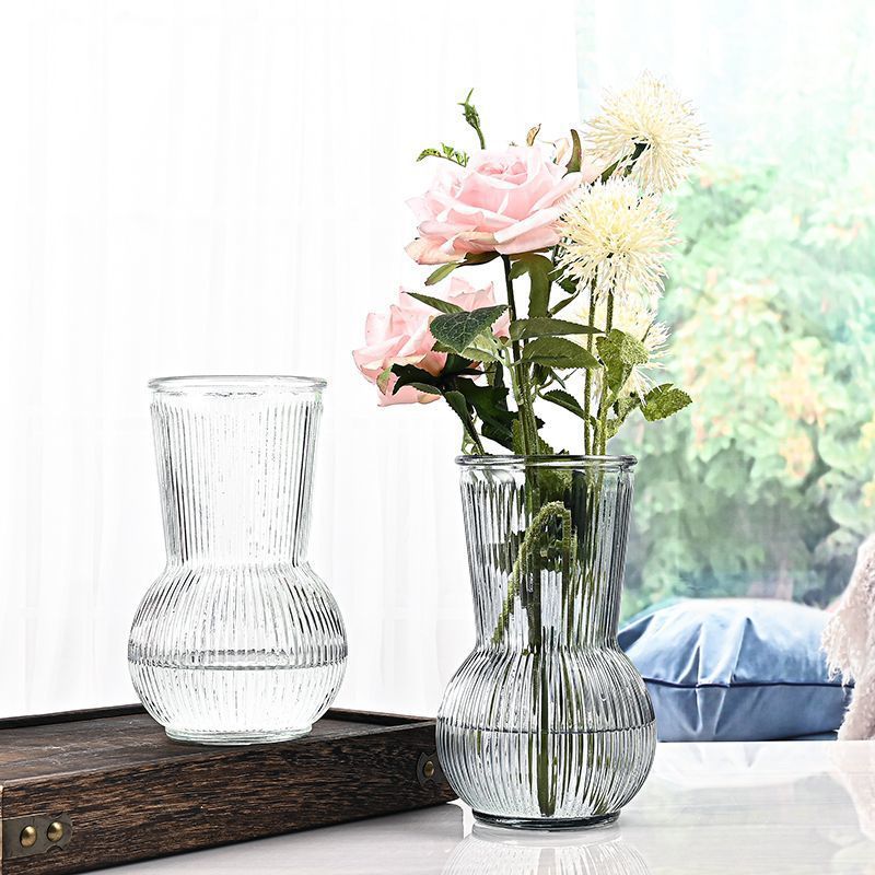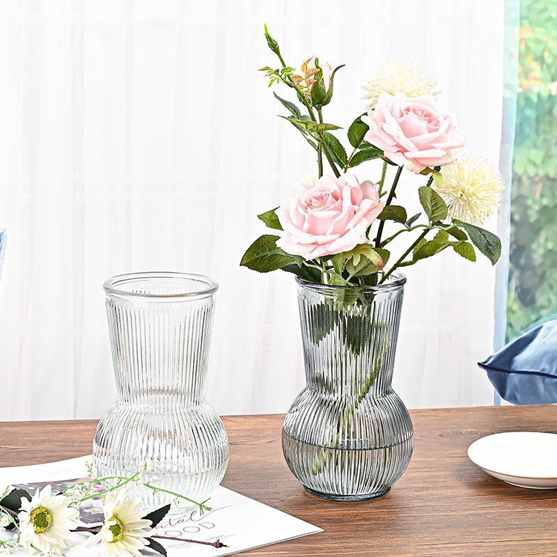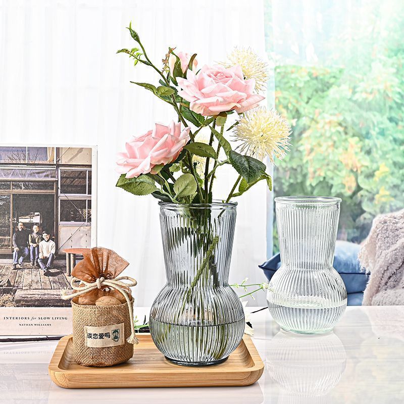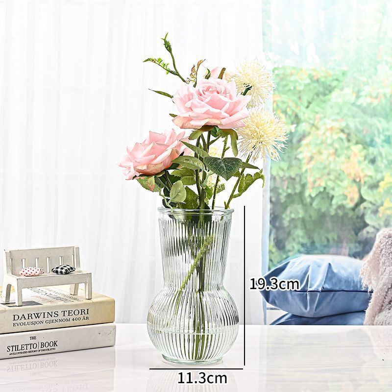 シンプルなクリエイティブ透明ガラス花瓶デスクトップ水養バラドライ花北欧ins風リビング生け花置物