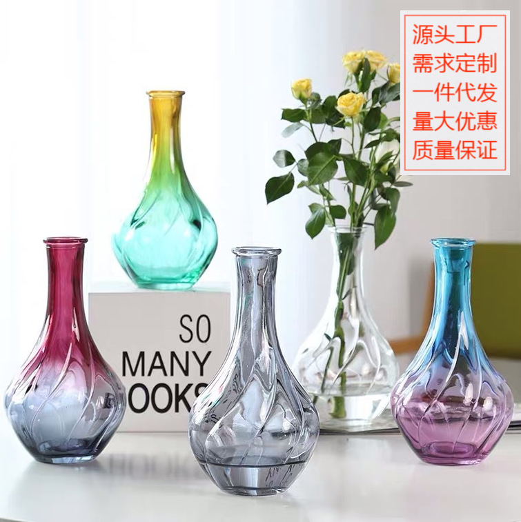 卸売り北欧創意シンプルガラス花瓶透明水培植物花瓶デスク生け花置物カラー