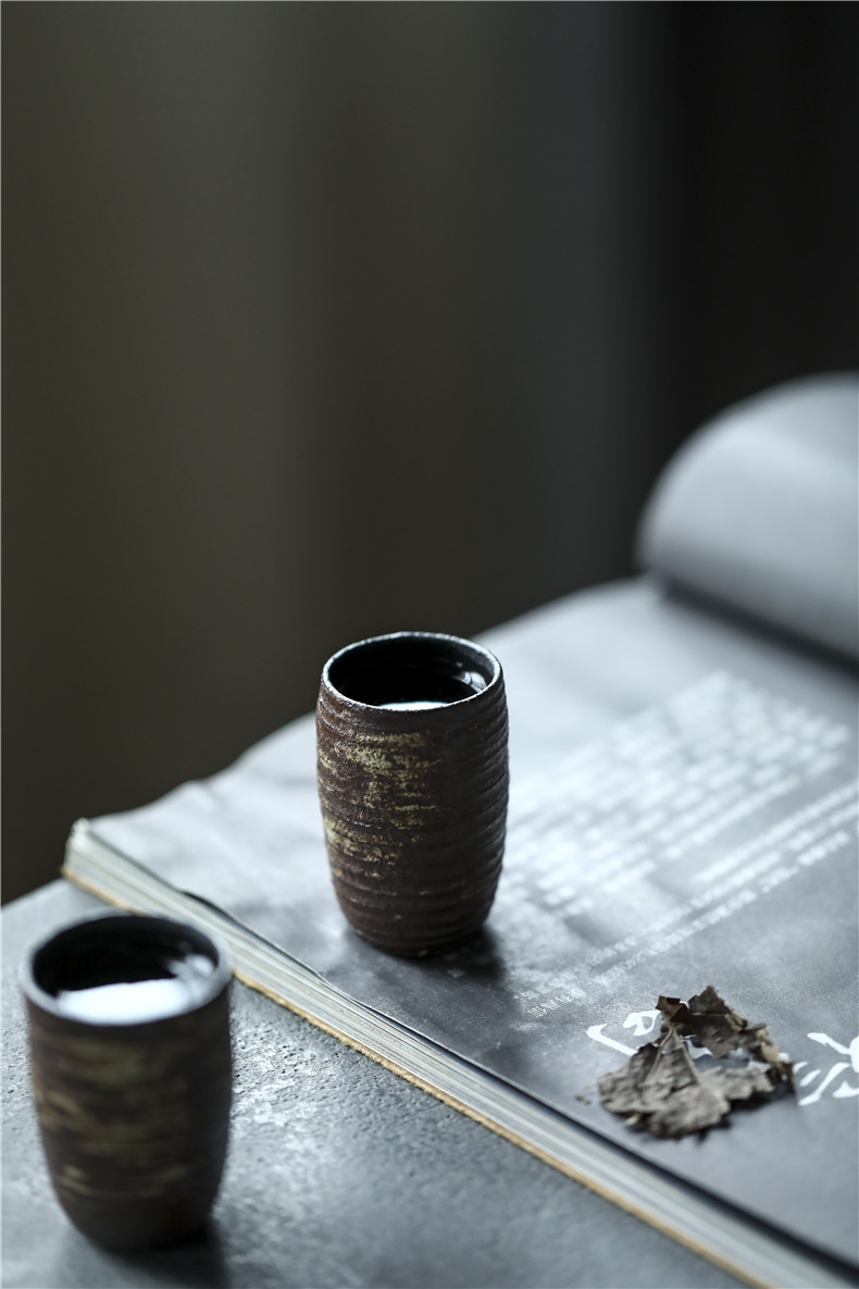 陶芸家の作品シリーズの元の朴の大きいサイズの杯の陶磁器の品の杯の粗い陶寂風の杯の中の金属の黒い釉薬の極