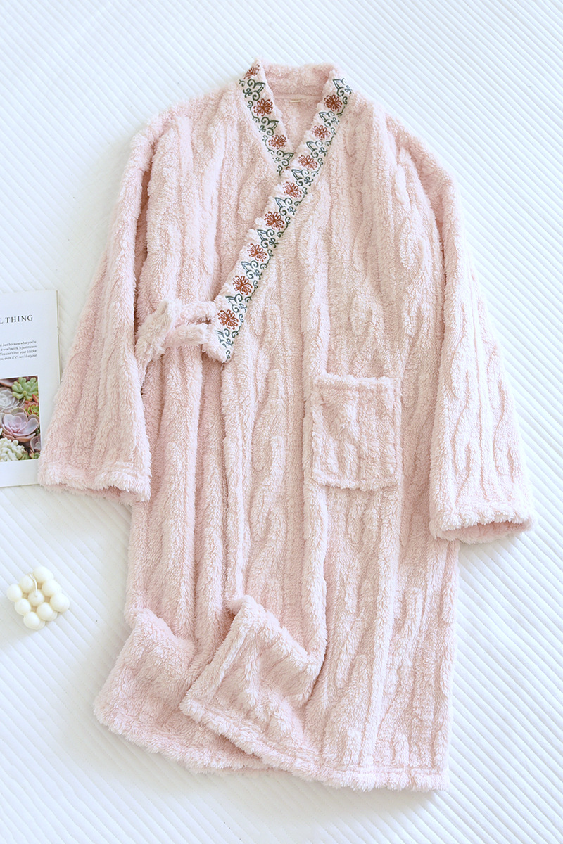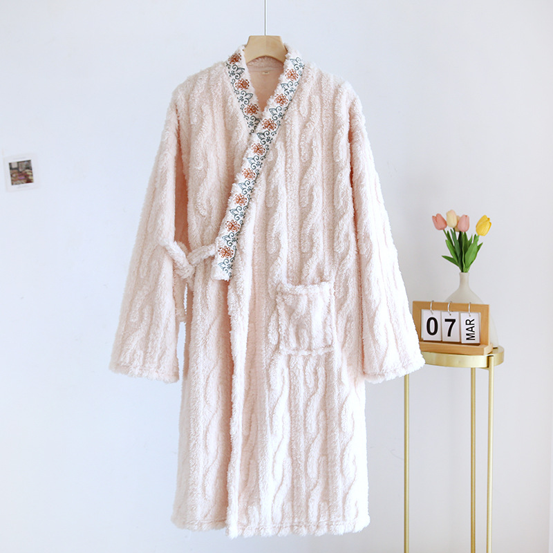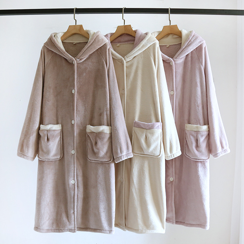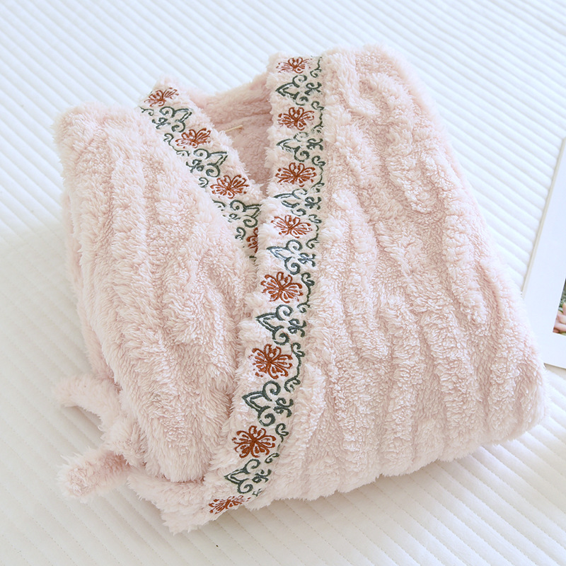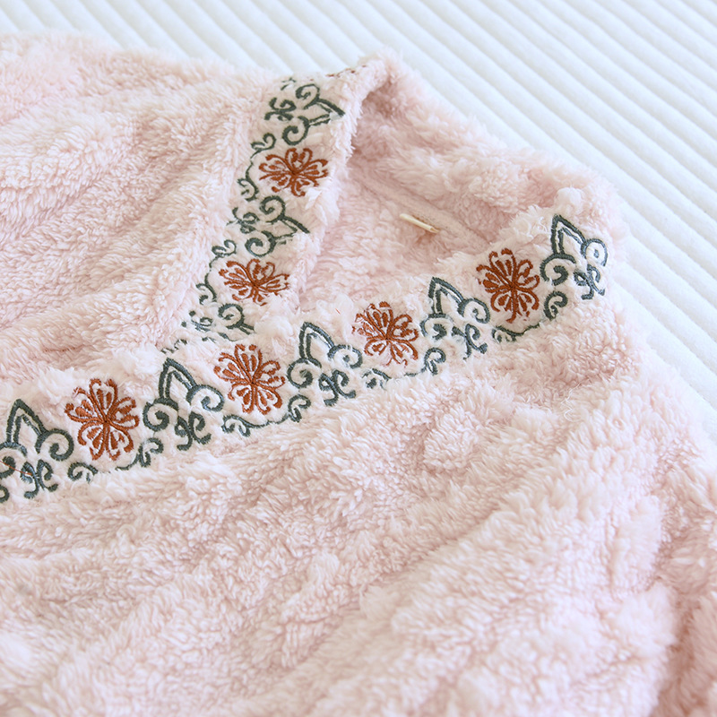 国風フランネルは寝衣を持っています。秋冬の長いタイプの女性は、カーディガンのサンゴのベルベットの家の服のバスローブを厚くします。