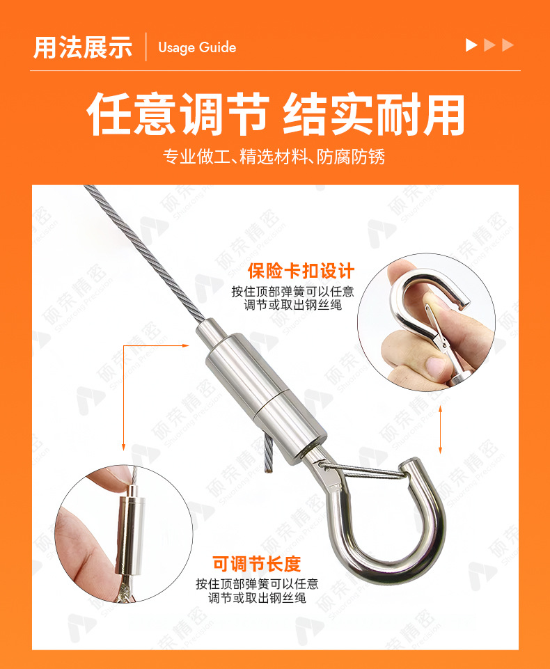 跨境货源带球挂钩吊绳锁线器紧绳器钢丝绳钢丝吊线保险绳挂画吊绳