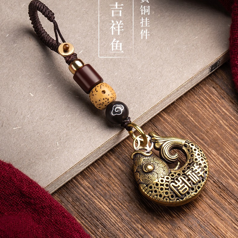 富貴吉祥魚真鍮自動車鍵小ストラップ復古風金剛縄バックル編み鍵ストラップ小ストラップ