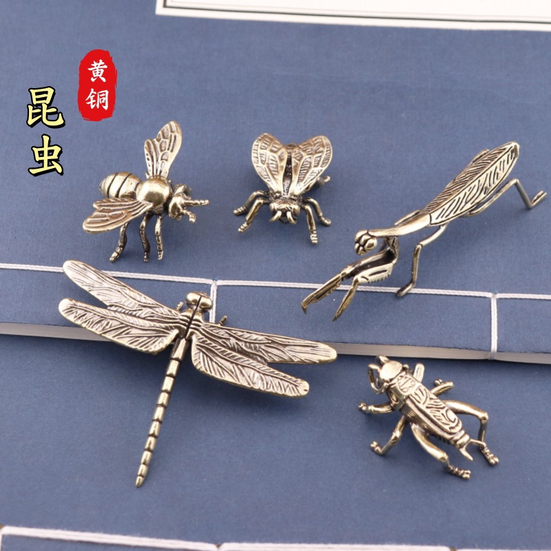 創意純粋な真鍮のハチのカマキリのコオロギのトンボのハエの昆虫のシリーズのデスクトップのお茶は装飾の工芸品の置物をかわいがります。