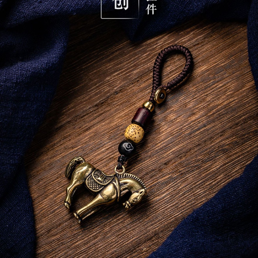 クリエイティブ真鍮干支馬ペンダント馬成功ポニー車のキーホルダーペンダント装飾アクセサリー