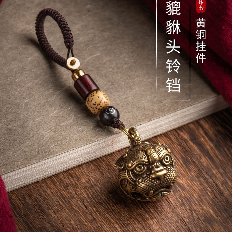 純黄銅心経鈴アクセサリー自動車キーホルダーチェーンペンダント古風手編みストラップ小ペンダント卸売り