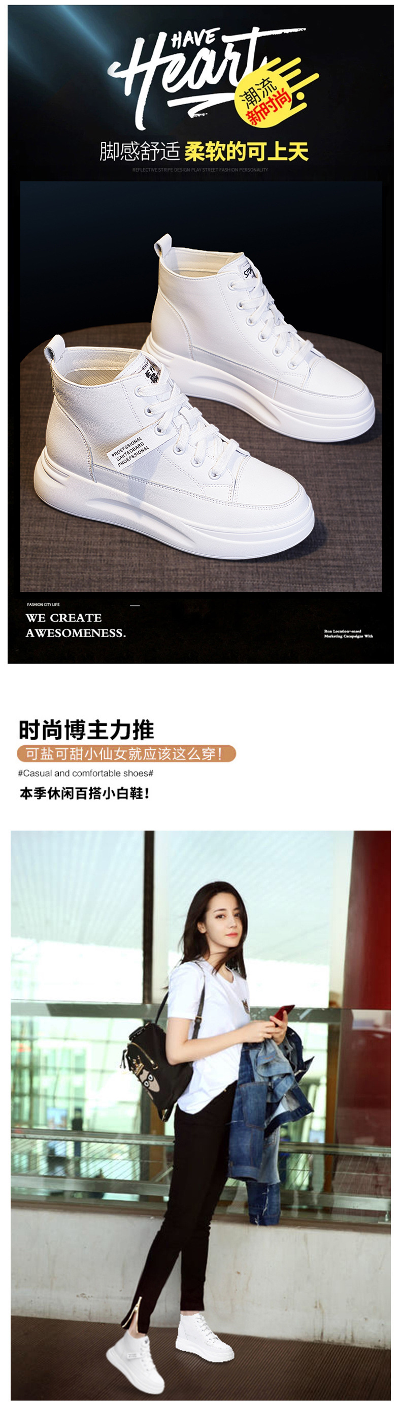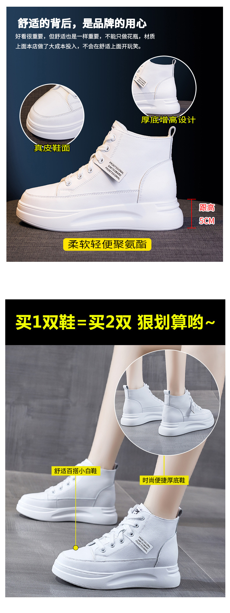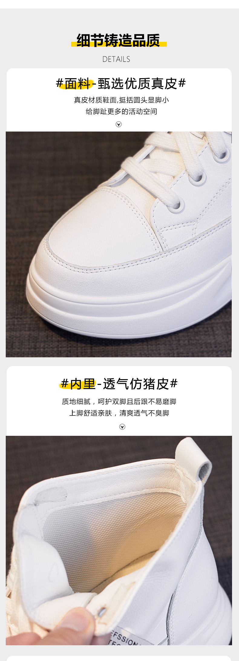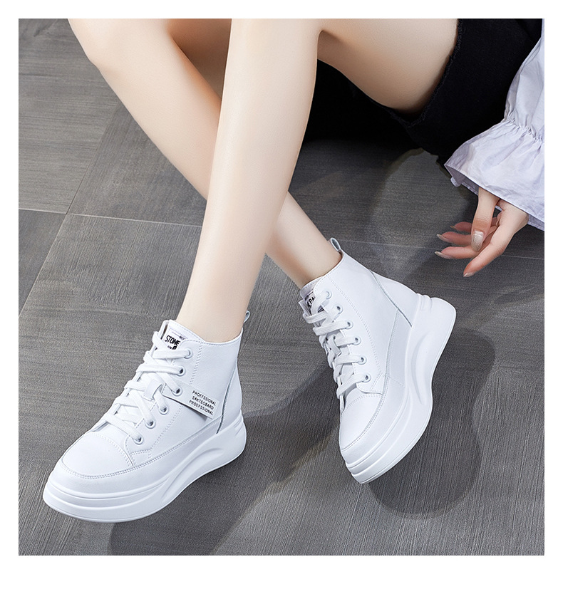 本革厚底ハイトップ白靴女性用 2025 春の新作厚底韓国風シングルシューズ平底多用途女性スニーカー