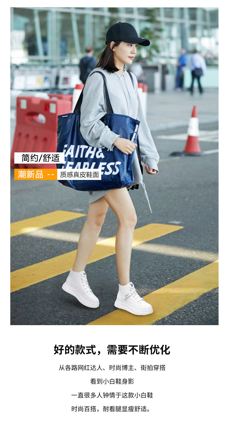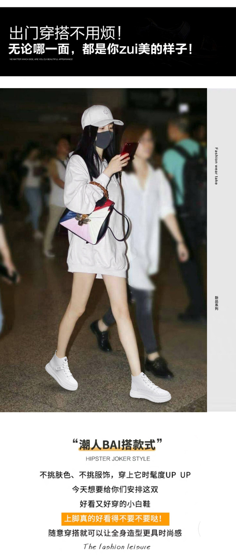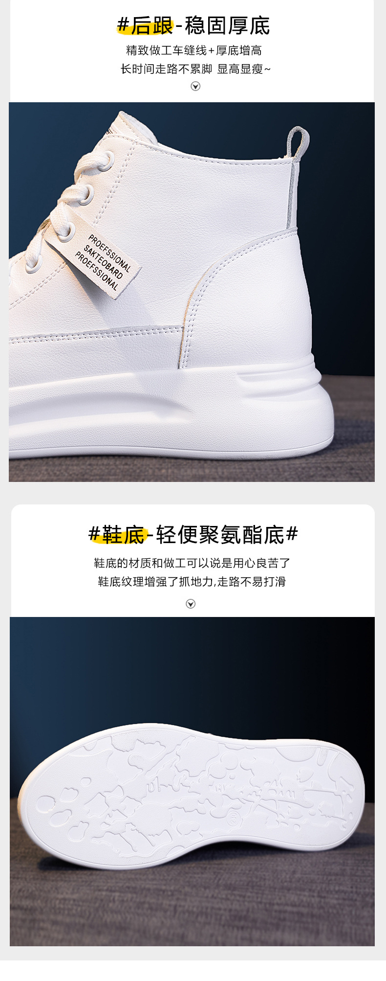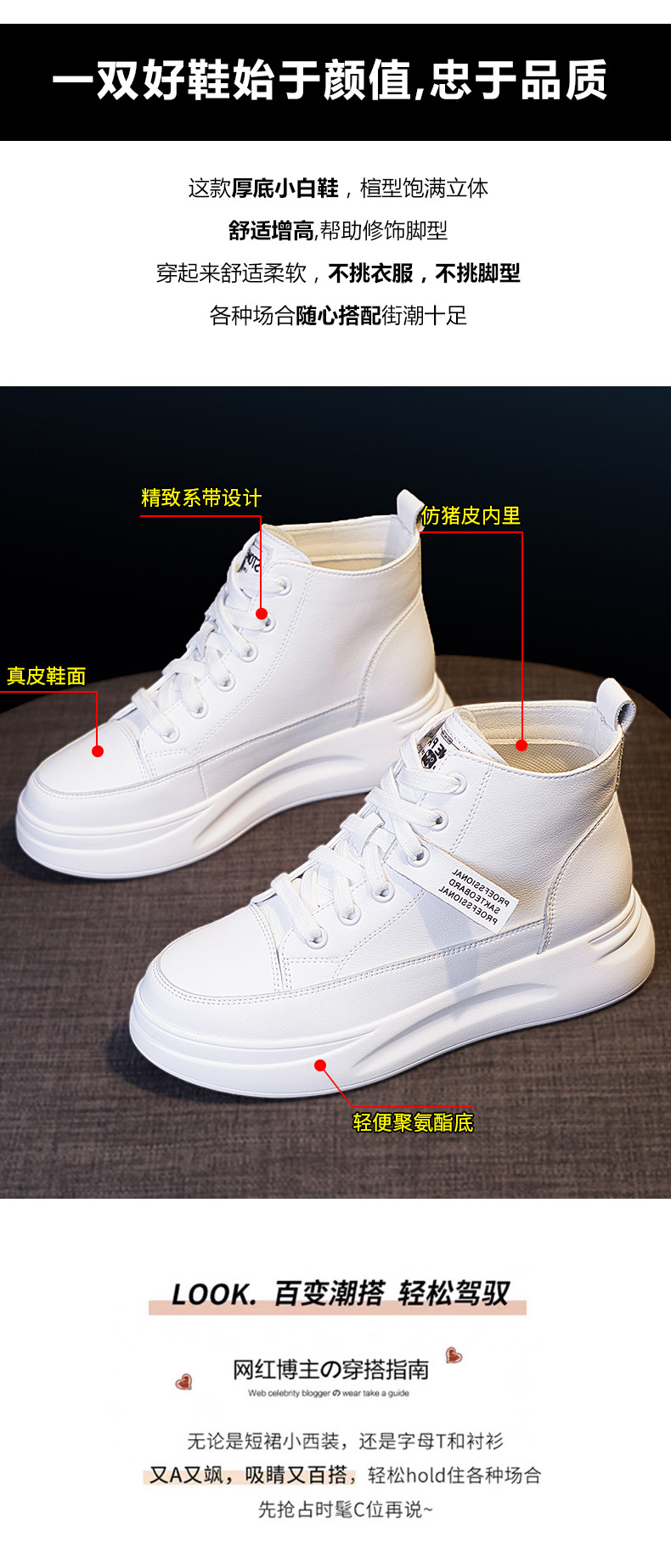 2025年秋新作、小さめ体型向けカジュアルハイカット白スニーカー、秋冬用、裏起毛厚底、身長アップ効果のあるレディースシューズ