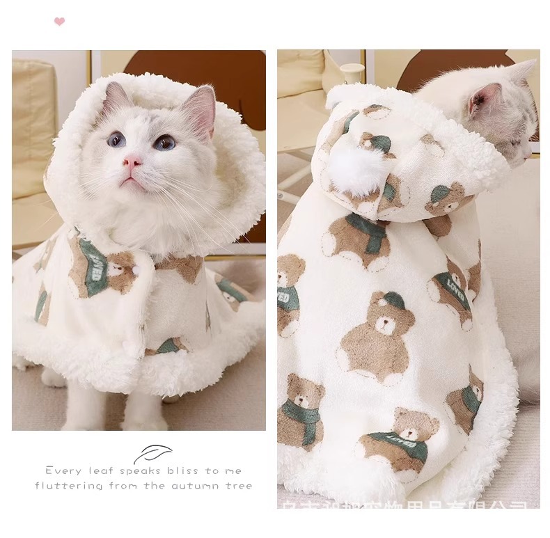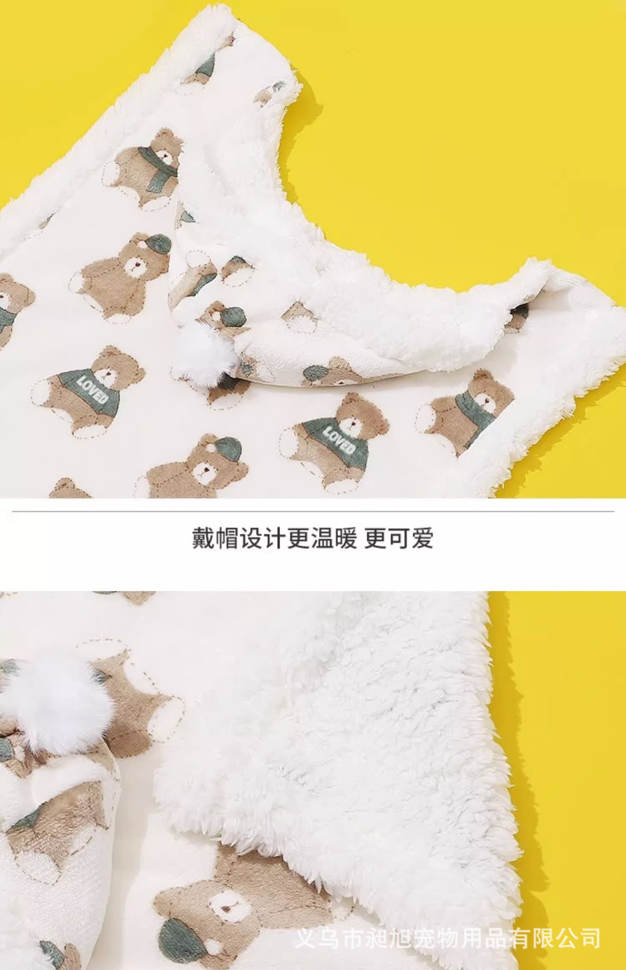 犬用毛布、ペット用寝具、クマの寝巻き、外出用秋冬暖かい小型犬用マント、服、セーター