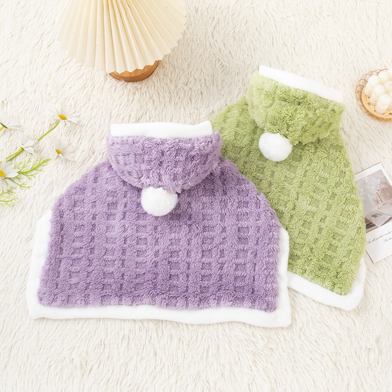犬服 秋冬用 寝る時用 マント 小さな格子柄 フード付きケープ 暖かい 猫服 小型犬 ペット服