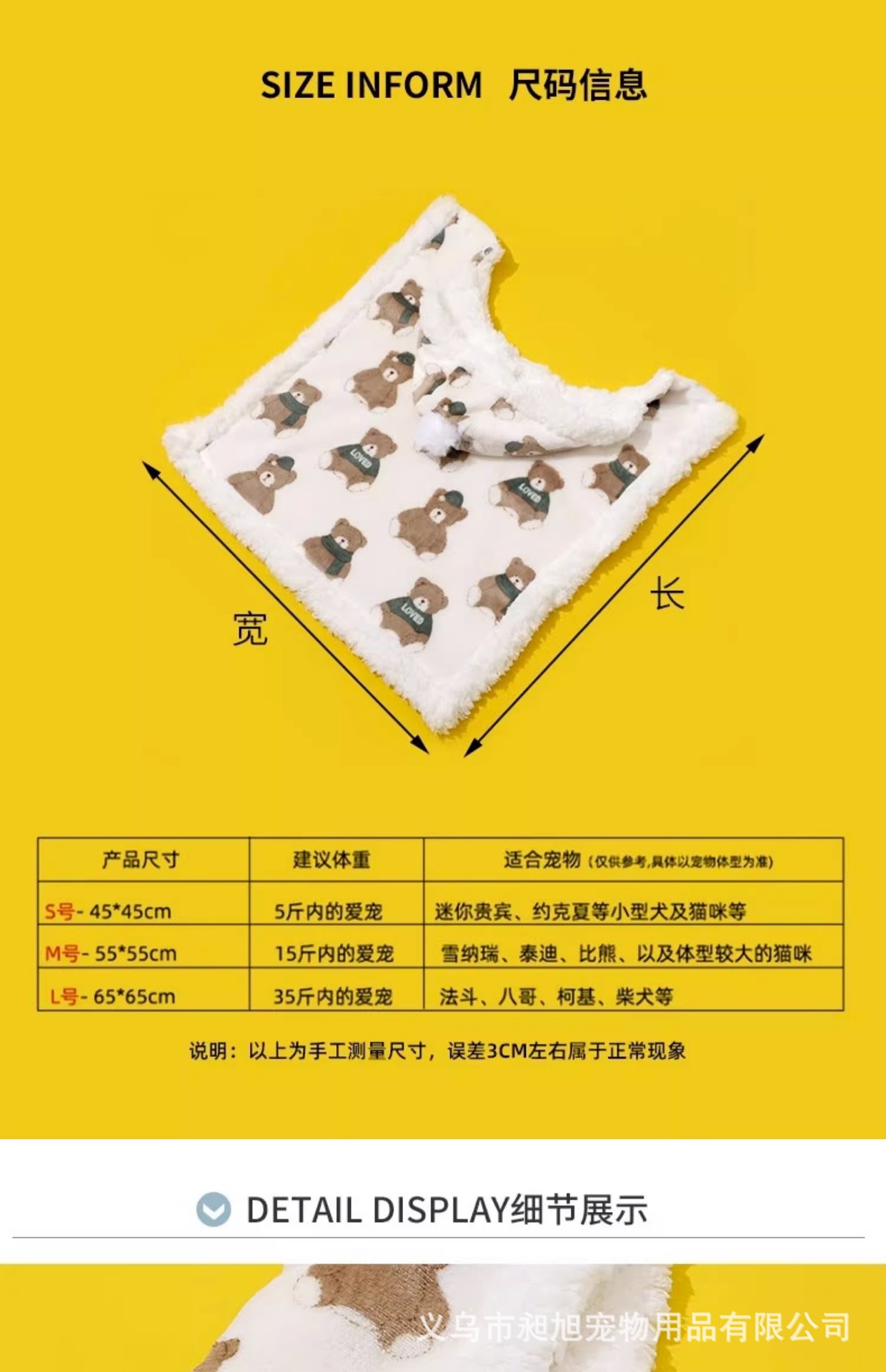 狗狗披风秋冬猫咪狗狗保暖披风宠物毯子法兰绒宠物披风猫被子狗被