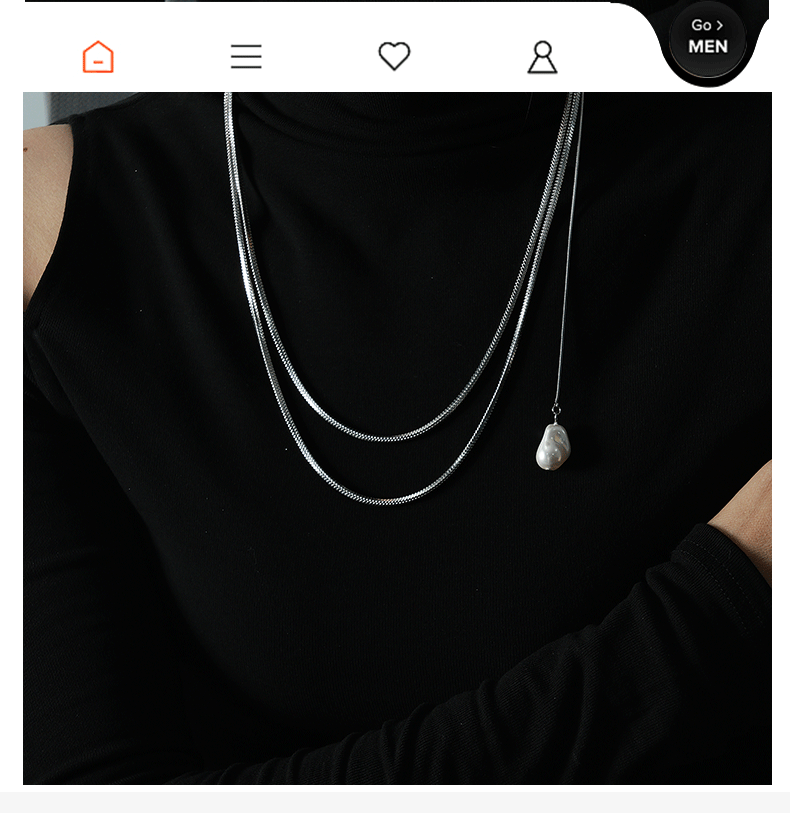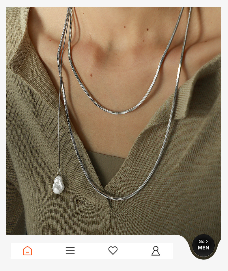 チタン鋼は18k金のネックレスを重ねて装着しています。