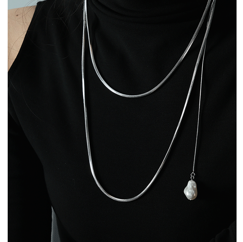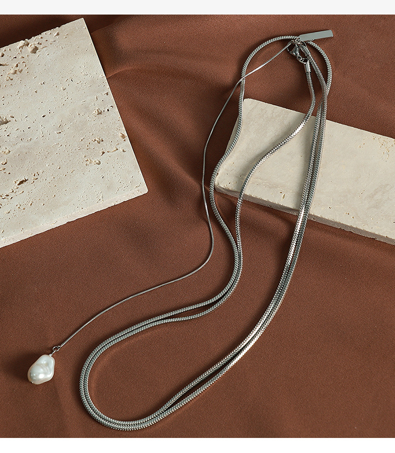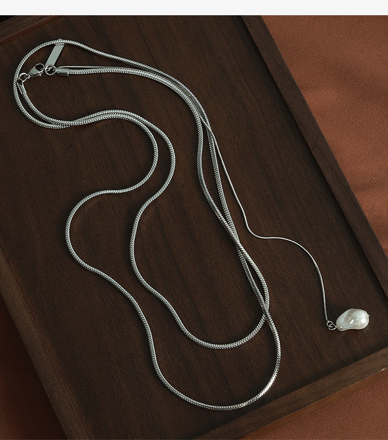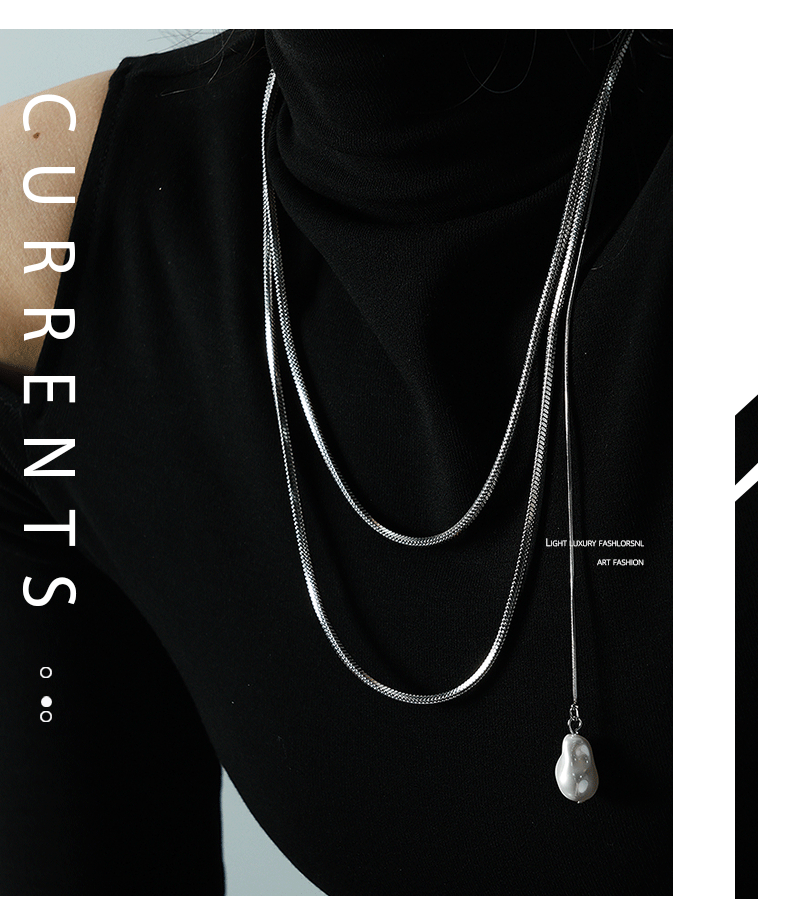 欧米風クロスボーダー風バロックパールロングセーターチェーン、ファッショナブルで上品な高級感のあるネックレス、ニッチなアクセサリー
