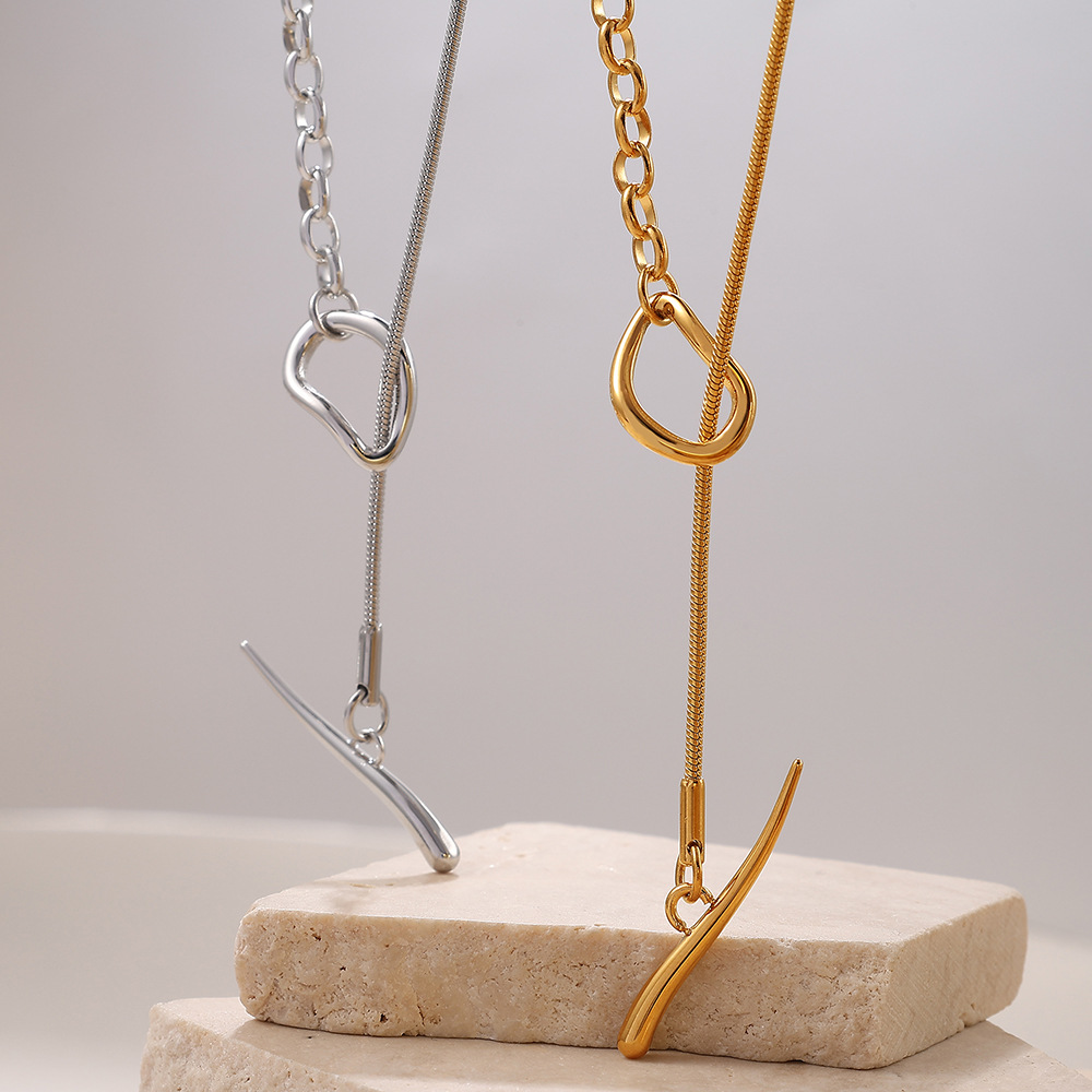 韓系ins風個性小衆幾何学線結びデザイン蛇骨鎖百合メッキ18kセーター鎖ファッション感