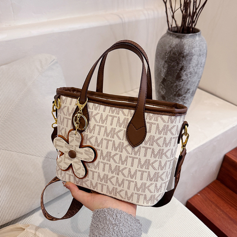 質感手提げバケツバッグ女性2025春夏新作野菜バスケット質感ショルダーバッグシンプルなプリントショルダーバッグ
