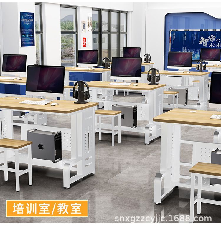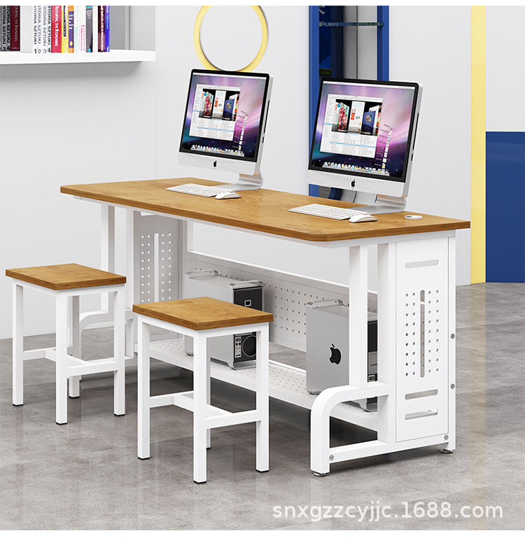学校のコンピュータ教室のコンピュータのデスクのトレーニング室のコンピュータのクラスの機械室のデスクトップの2人のコンピュータのテーブルと椅子