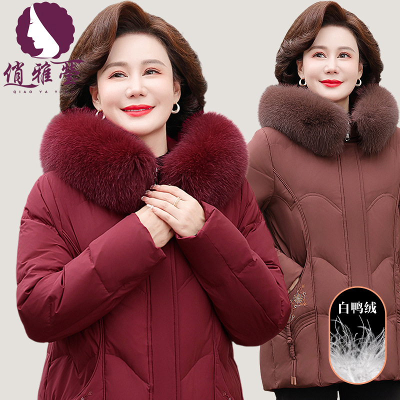 中老年女装冬季新款白鸭绒外套可拆卸毛领大码妈妈装羽绒服上衣