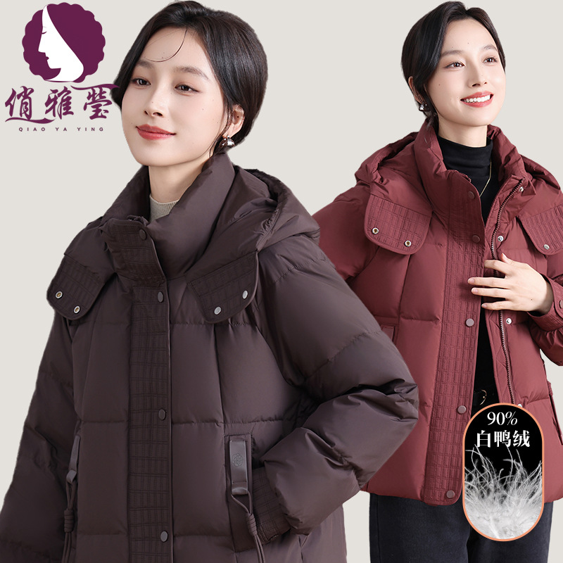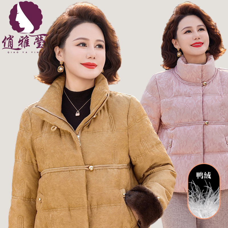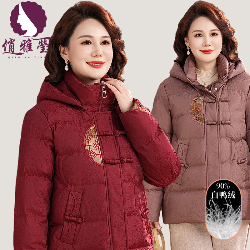 中年妈妈冬装羽绒服女士2025新款中老年连帽洋气加厚大码国风外套