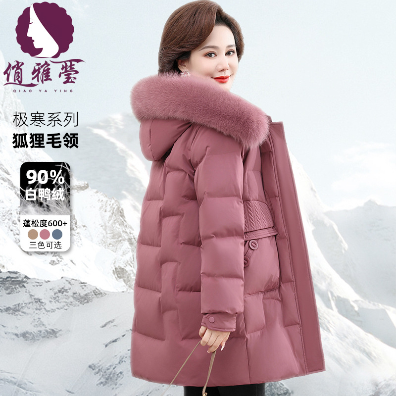 中老年女装羽绒服秋冬新款中老年妈妈装加厚中长款狐狸毛领外套