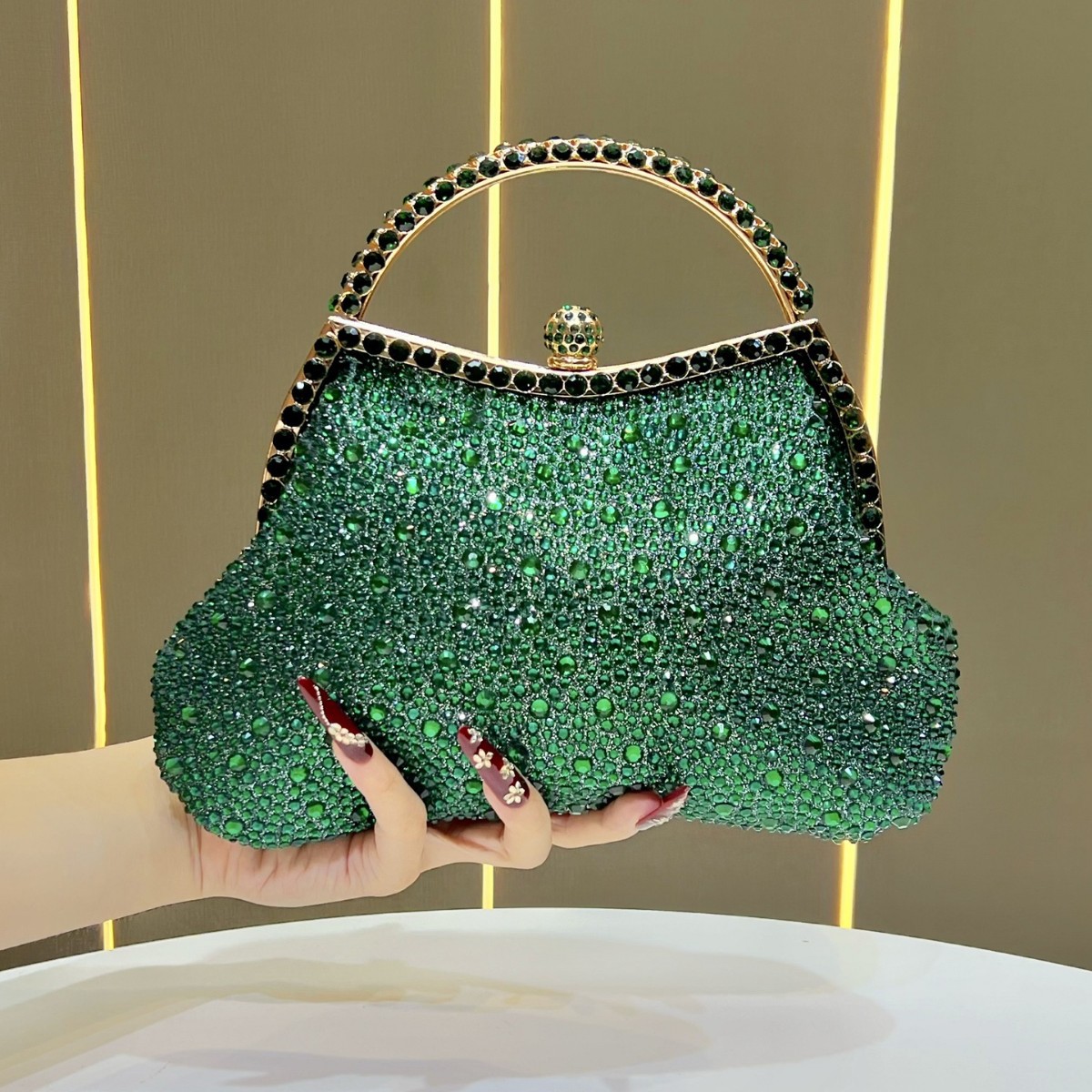 工場直販の新型国境を越えた電気商の対外貿易水ドリル結婚式の晩餐包水晶さんは片手で晩装包を持っている