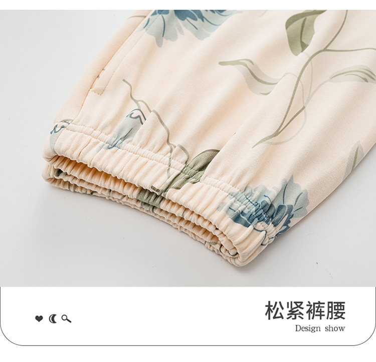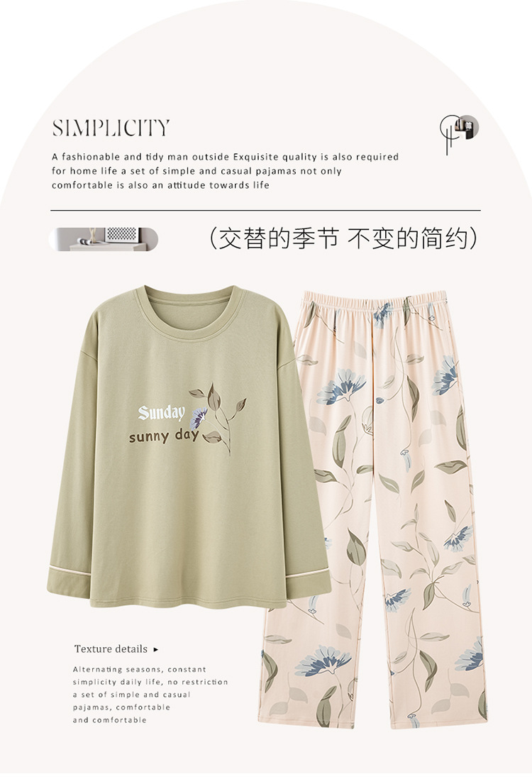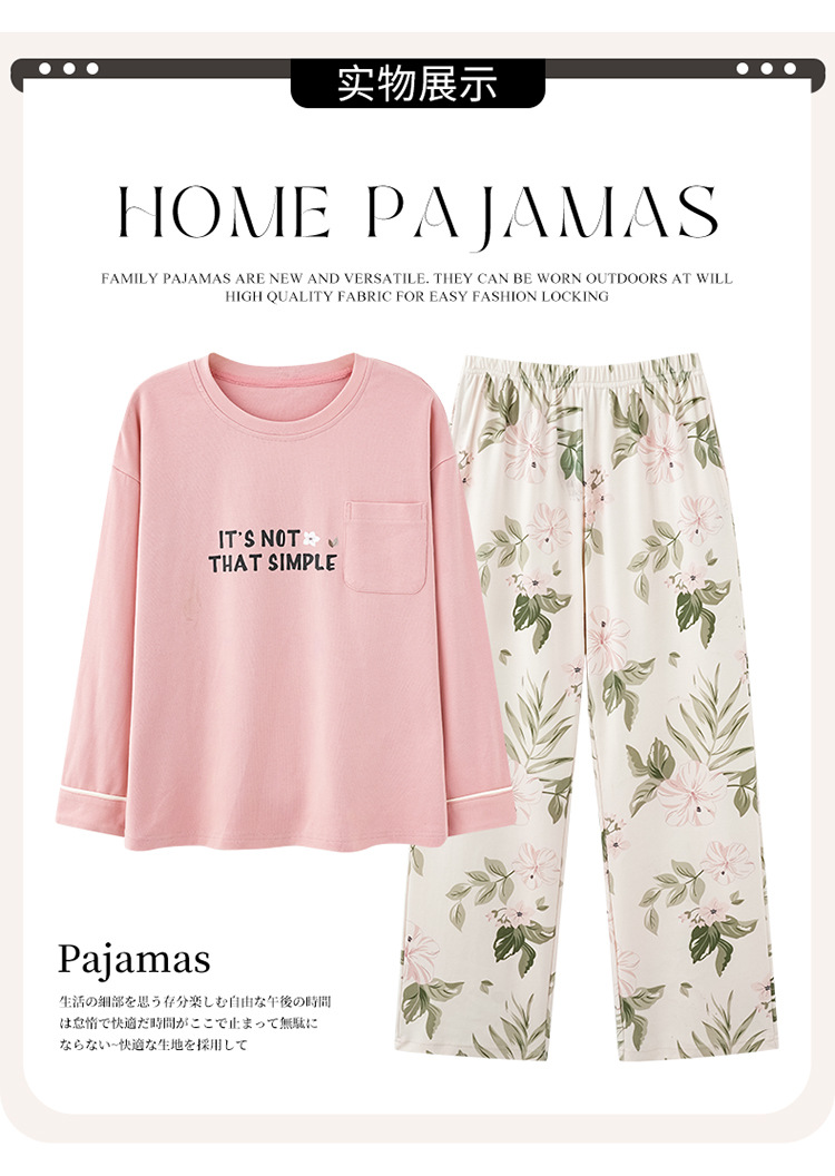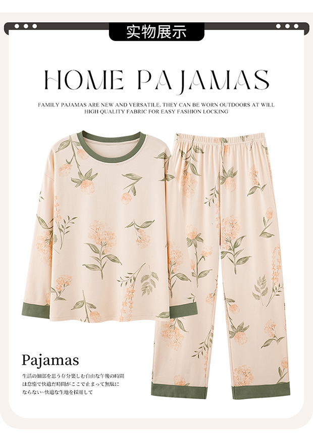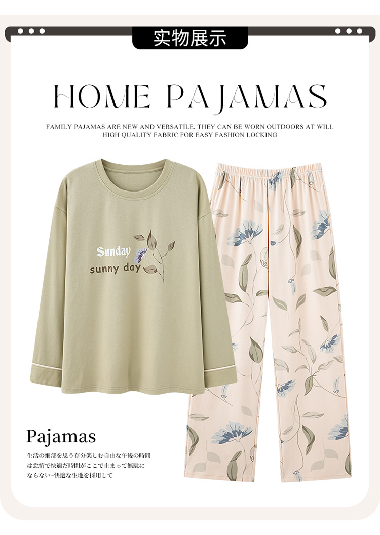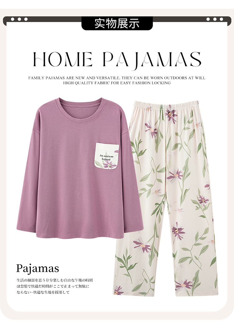 パジャマ女性の秋の長袖の新しい丸首はゆったりしていて、大きいサイズの綿の中年のお母さんの部屋の服のスーツは外で着ることができます。