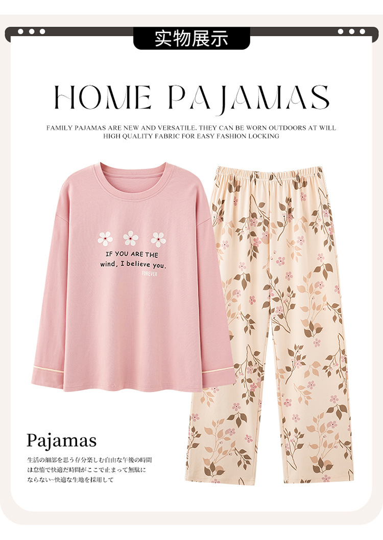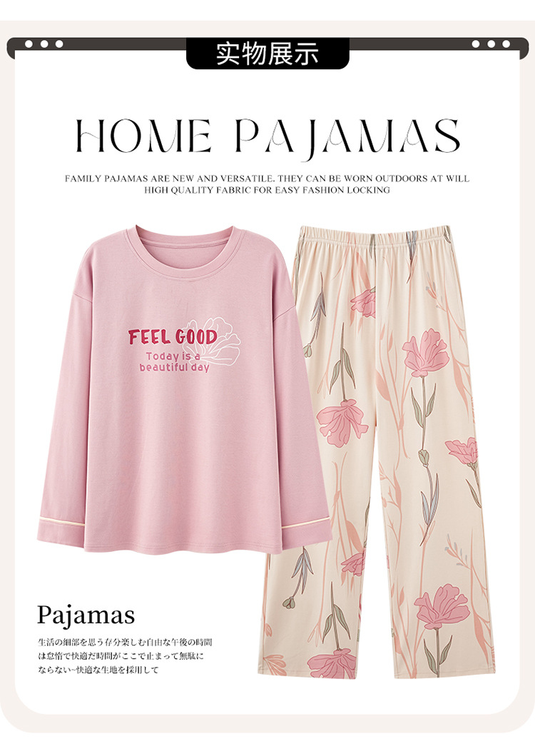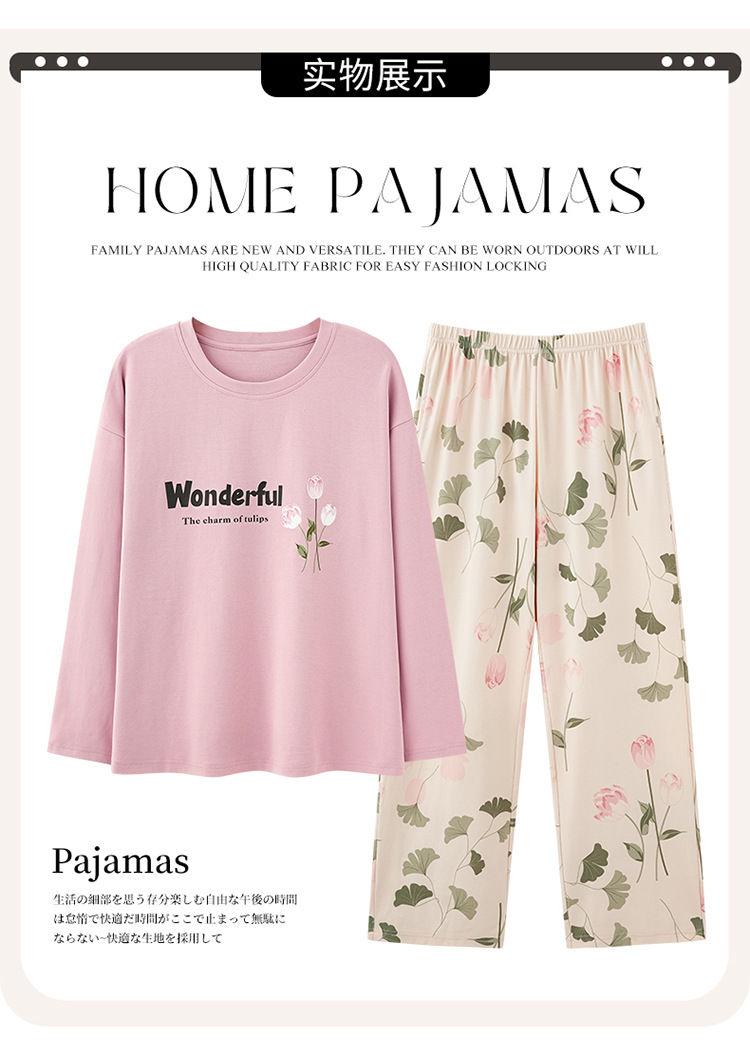 女性用パジャマ 春秋 綿 長袖セット 甘い漫画風 秋の新作 女の子用ホームウェア 外出着としても着用可能