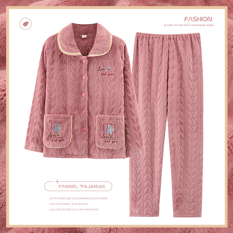 フランネルパジャマ女性秋冬長袖カーディガンセット