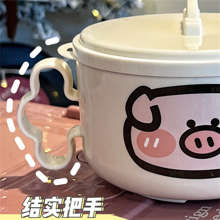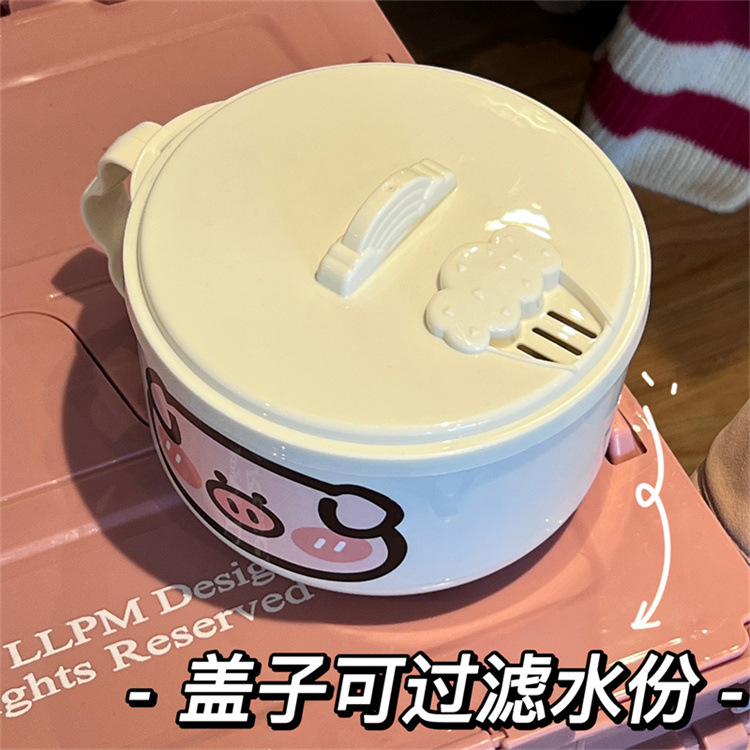 かわいいinsチーズカップラーメンボウル蓋付き学生寮は水を切って食器や箸の大容量食堂で食事をすることができる