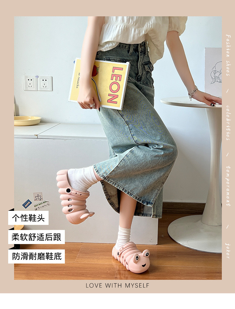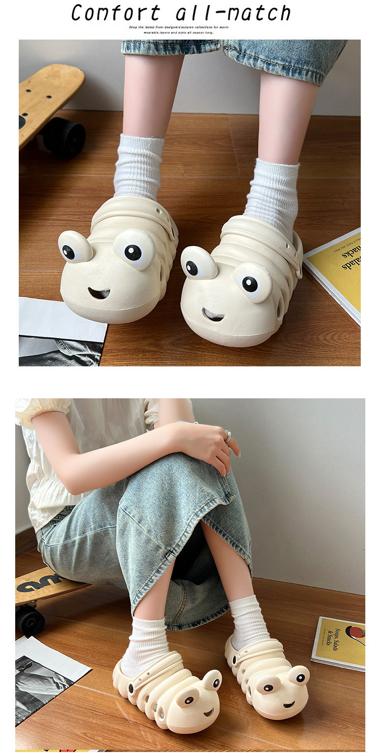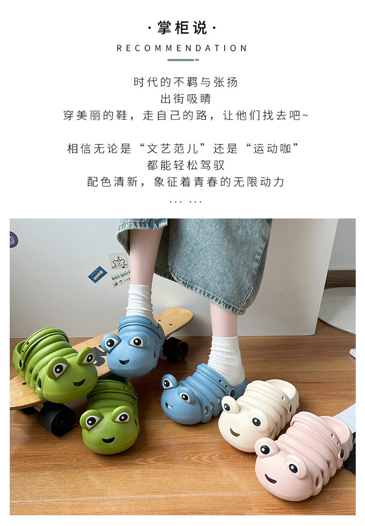 女性の穴の靴の夏のかわいい風の毛虫の漫画の親子の冷たいスリッパの家具は柔らかい底の包頭に住んでいます。
