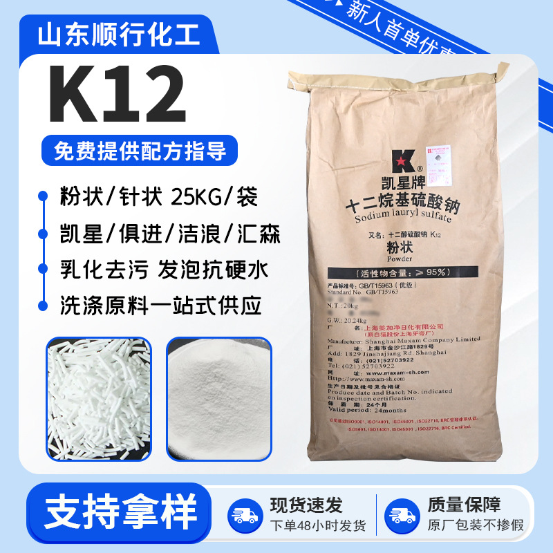 K12粉針状発泡剤洗浄原料汚れ除去乳化界面活性剤ドデシル硫酸ナトリウム