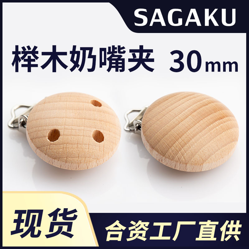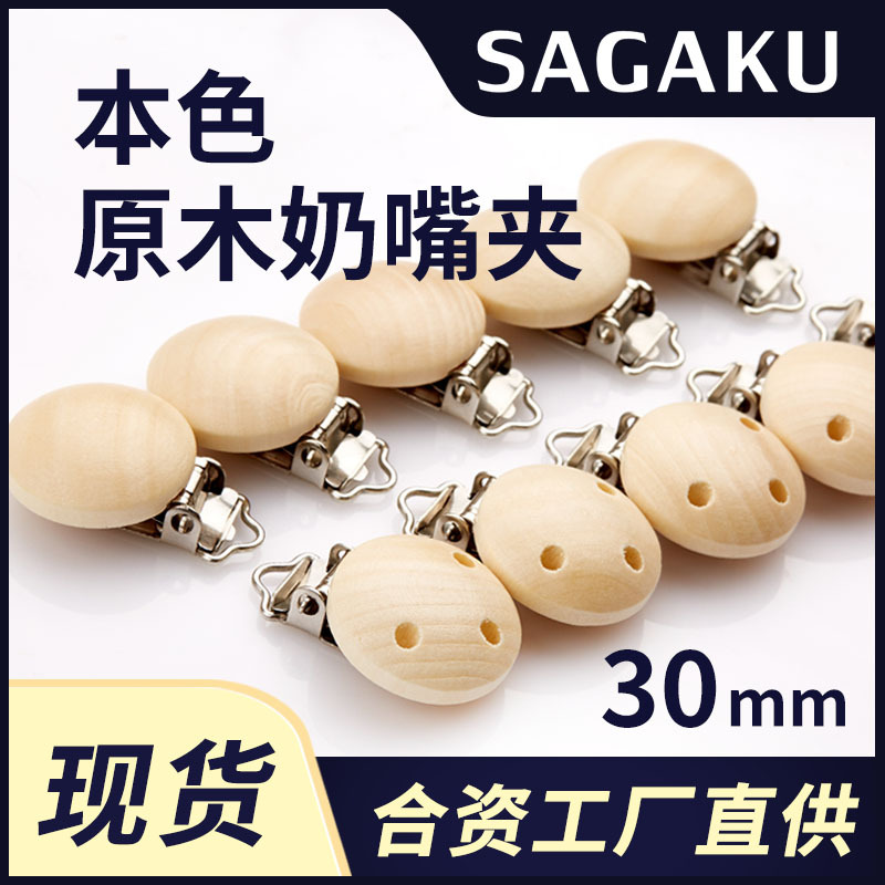 30mmケヤキミルク口クリップdiy幼児なだめ防止チェーンクリップ円形穴なし3穴木製ミルク口クリップ卸売り