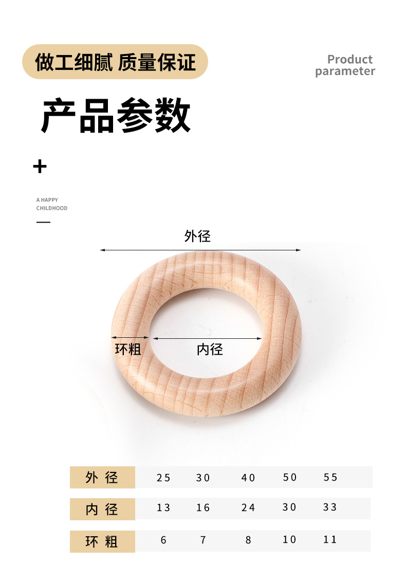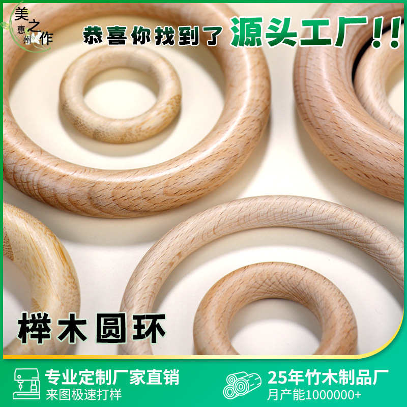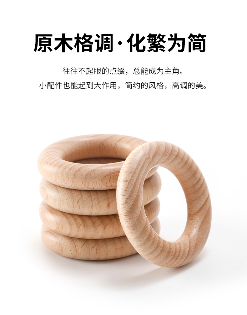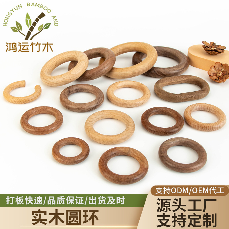 新款榉木圈DIY配件吊环手袋扣件木环婴幼儿磨牙玩具木质木圈圆环