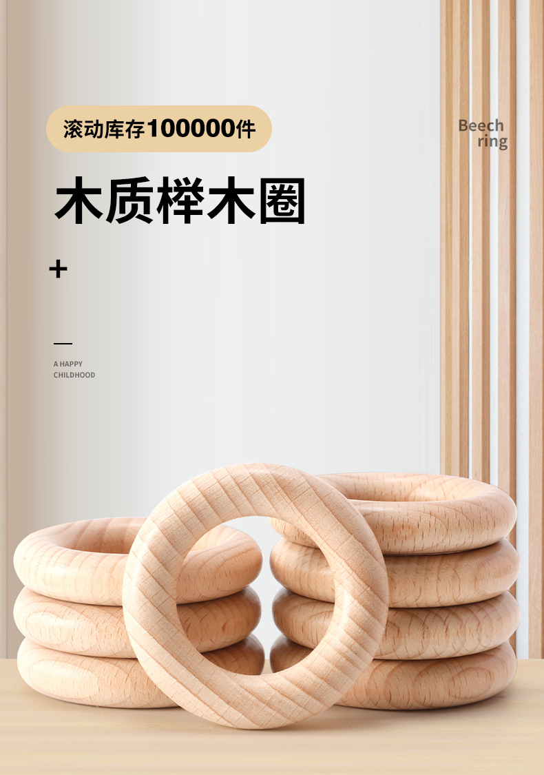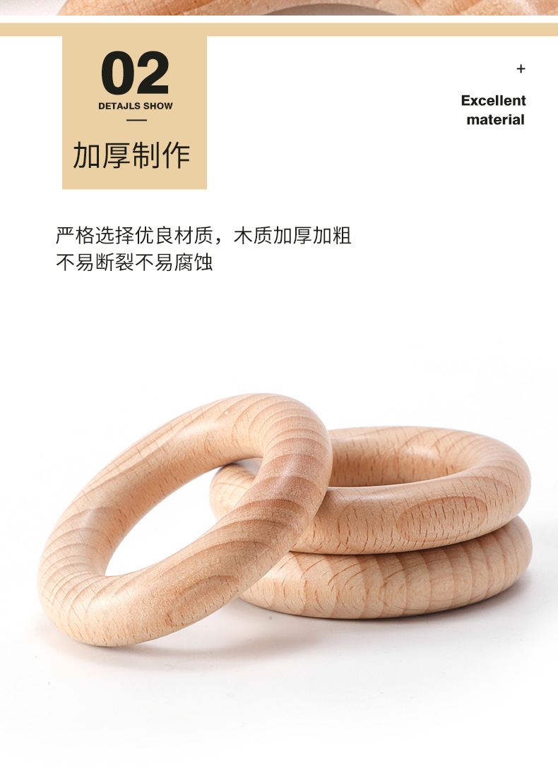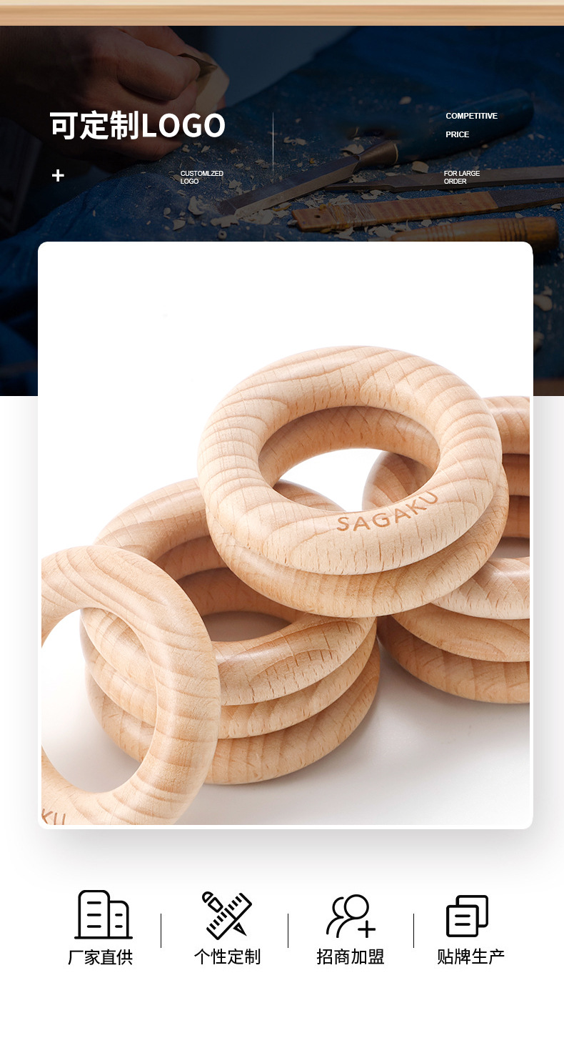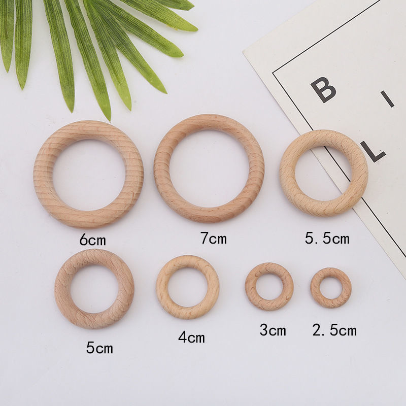 在庫あり卸売 ブナ材丸リング 赤ちゃん歯固め木製リング 無垢材アクセサリー DIY子供木製玩具一体型吊り下げリング
