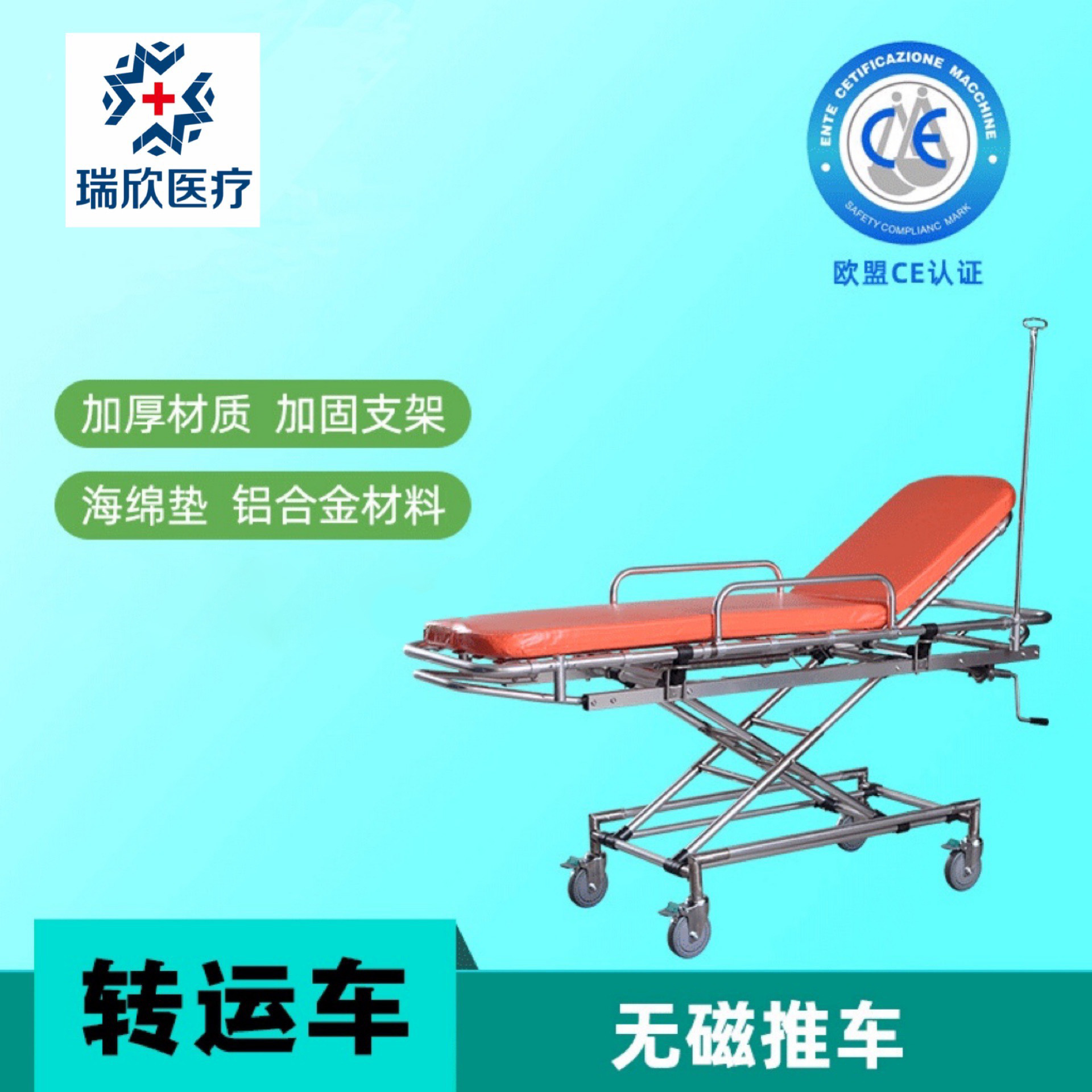 医療用非磁性アルミニウム合金救急ベッドカート核磁気共鳴手術輸送車非磁性ストレッチャーカート