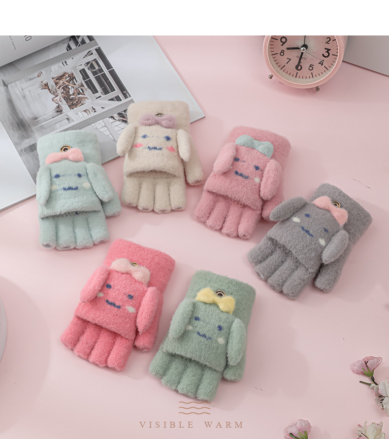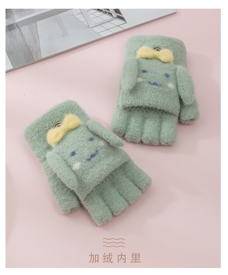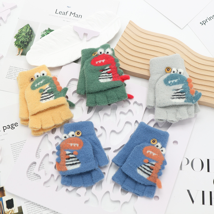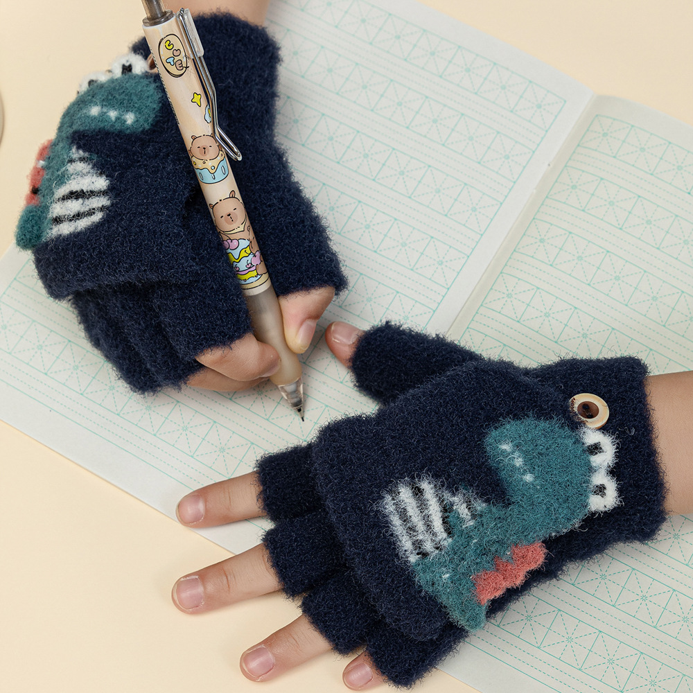 子供の保温手袋のアニメのかわいい恐竜は字を書いて秋冬の学生はカバーをひっくり返して半分の指の手袋のメーカーを編んで直接供給します。